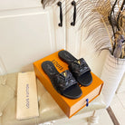 LV Neo Revival Flat Mule Black Lambskin