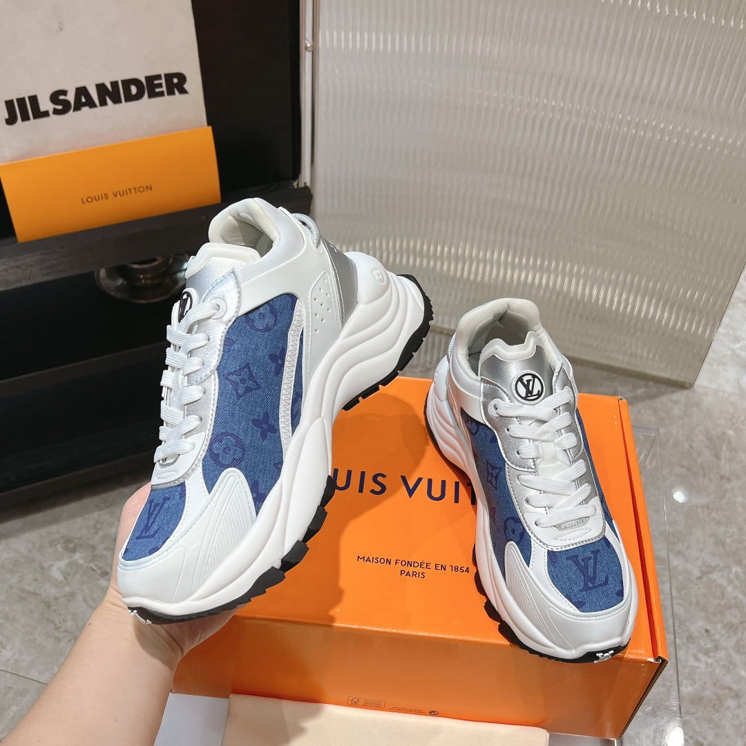 LV Run 55 Sneaker 50mm Blue Grey Monogram Jacquard Fabric
