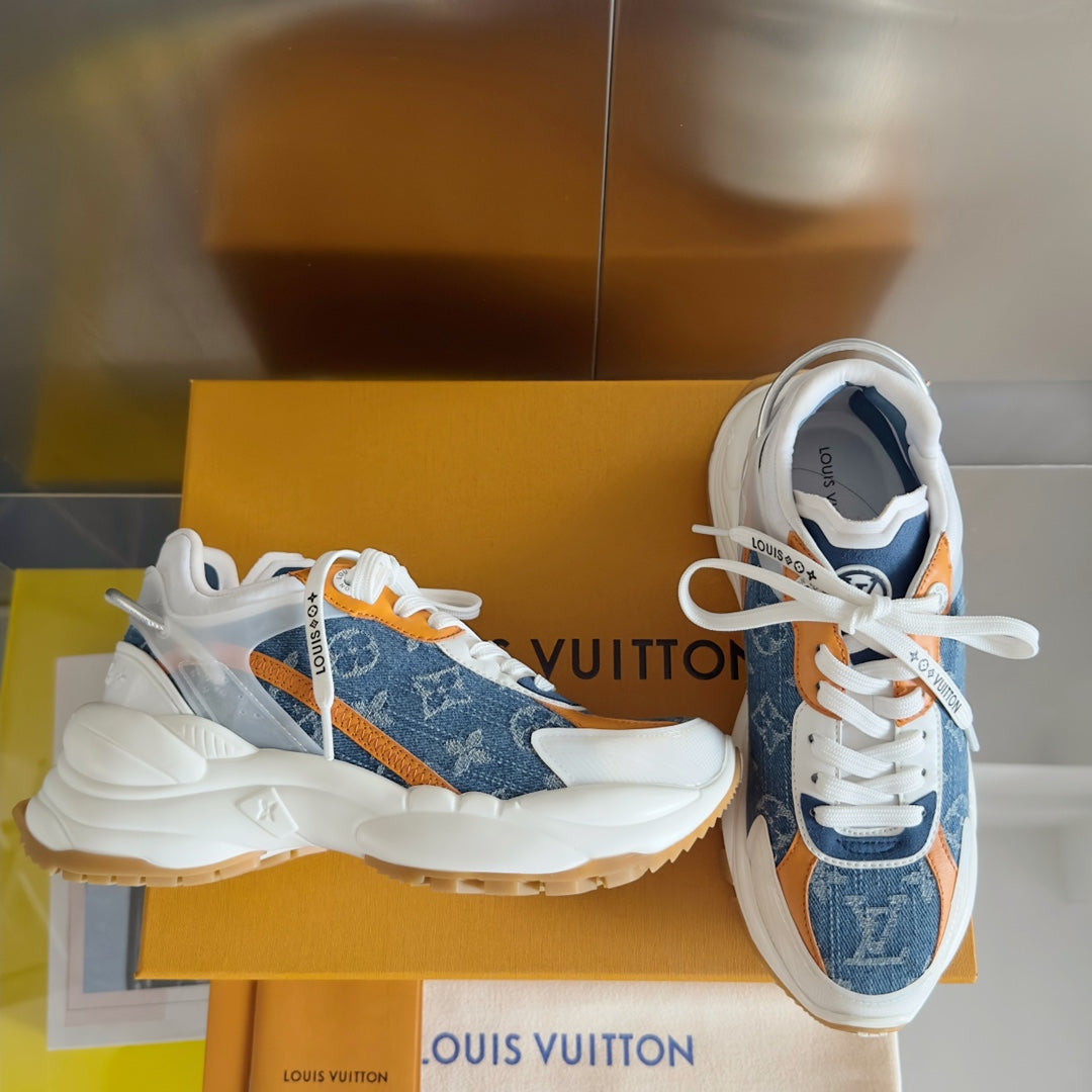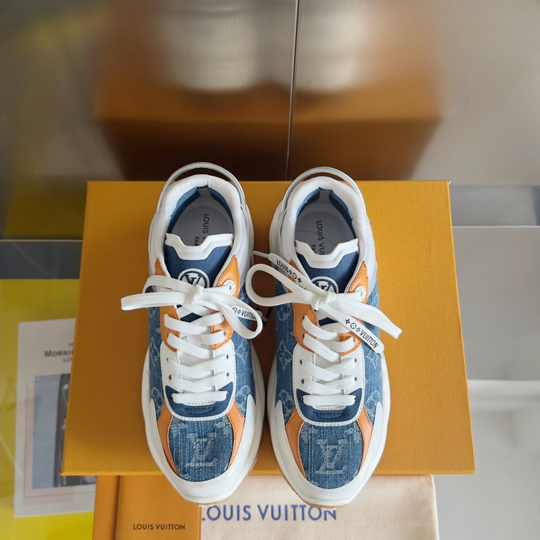 LV Run 55 Sneaker 55mm Light Blue Mix Orange Monogram Jacquard Fabric