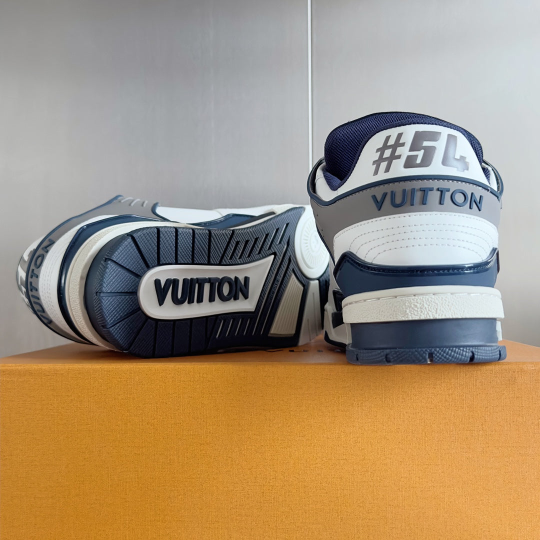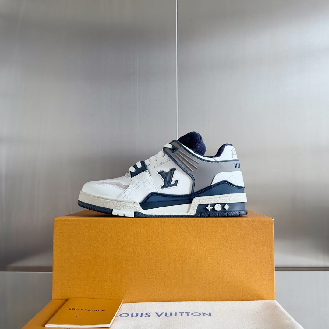 LV Trainer Sneaker 30mm White Mix Blue charcoal Cowhide