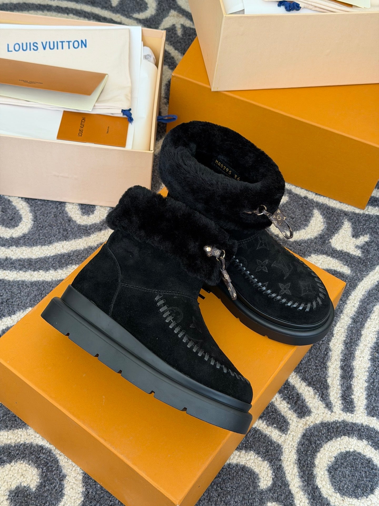 LV 25 Snow Boots Brown Black Leather Wool 576937