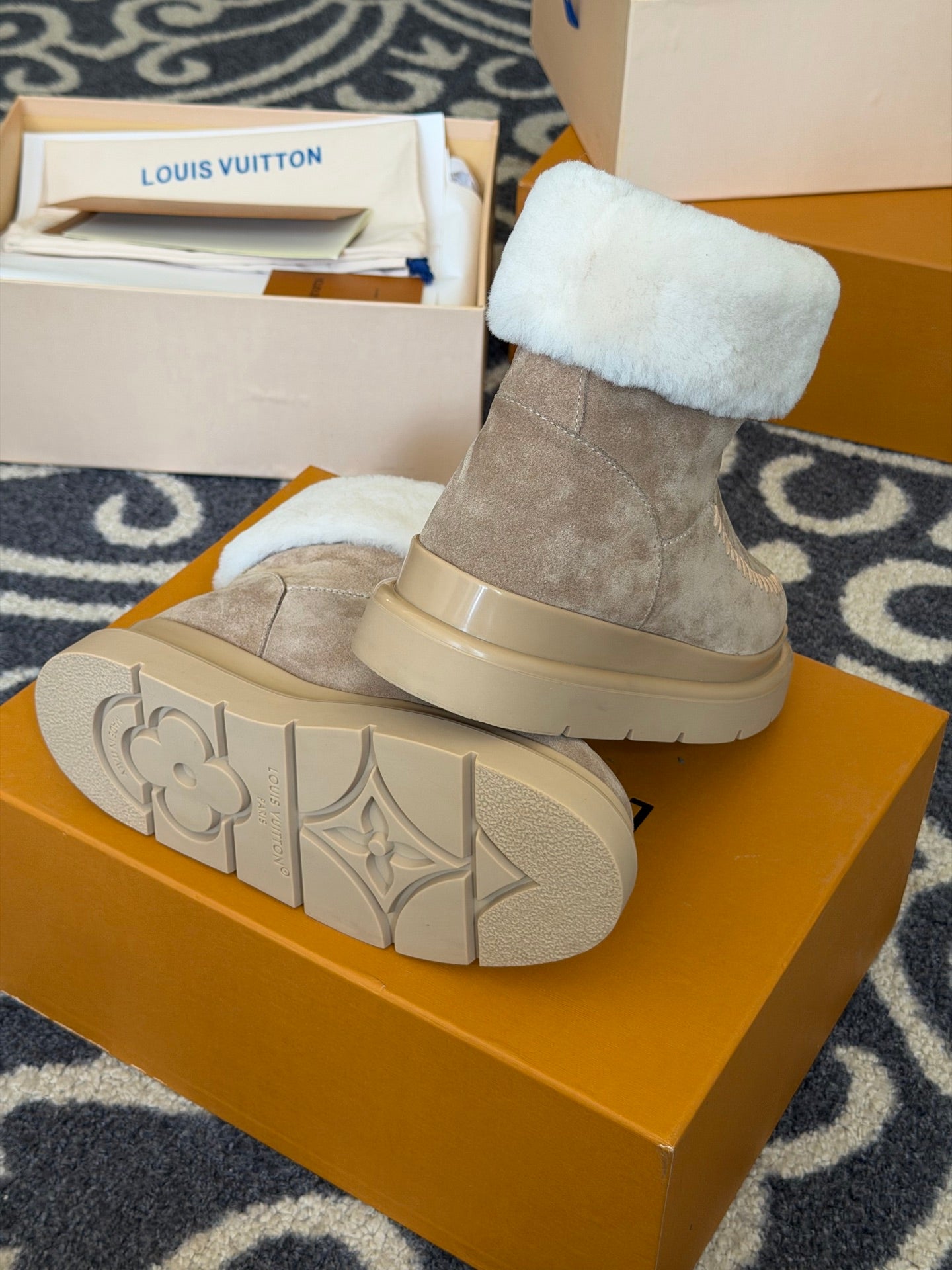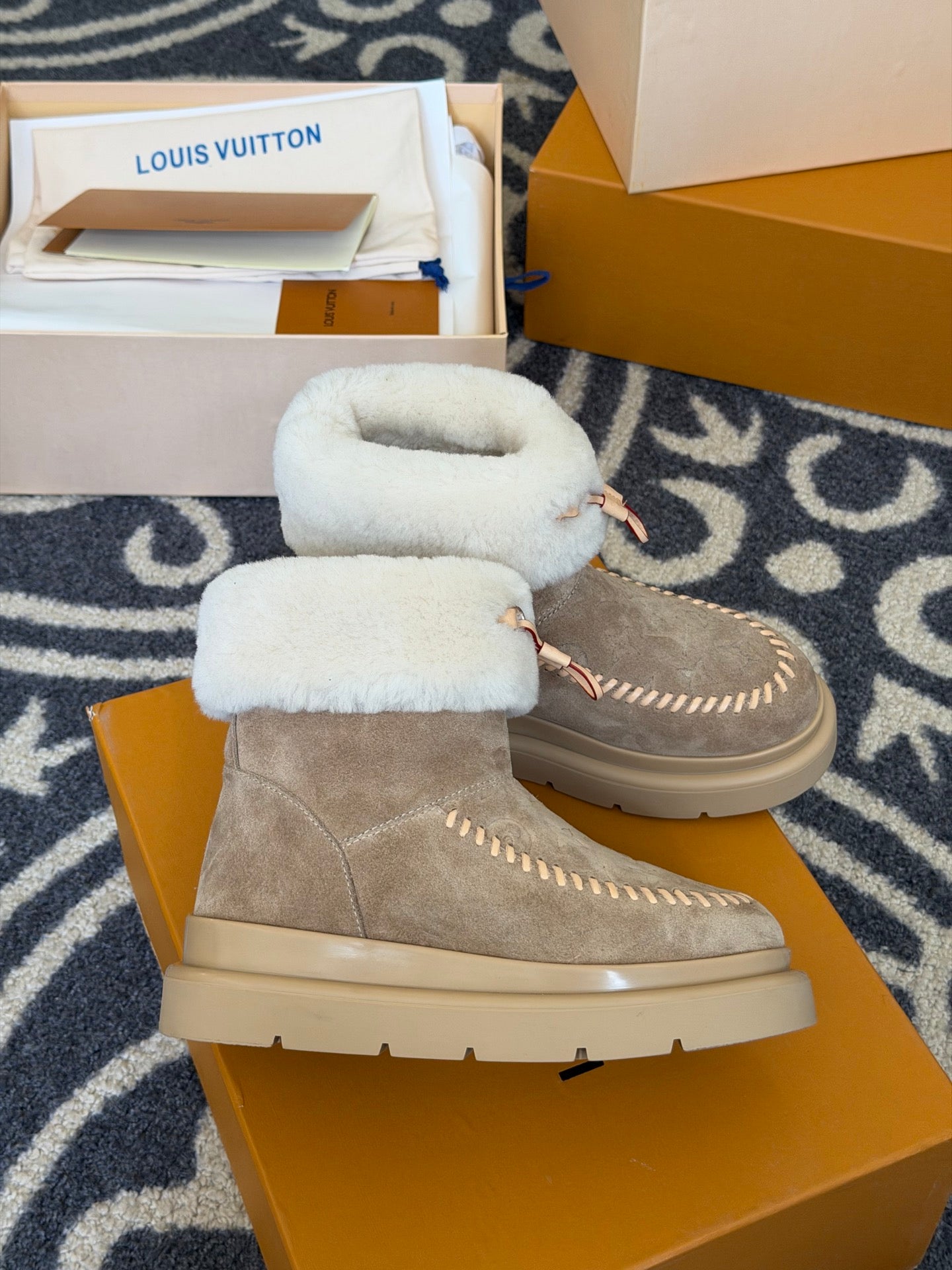 LV 25 Snow Boots Brown White Leather Wool 576936