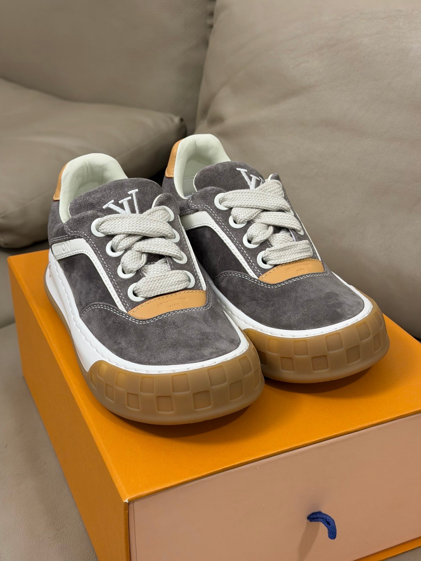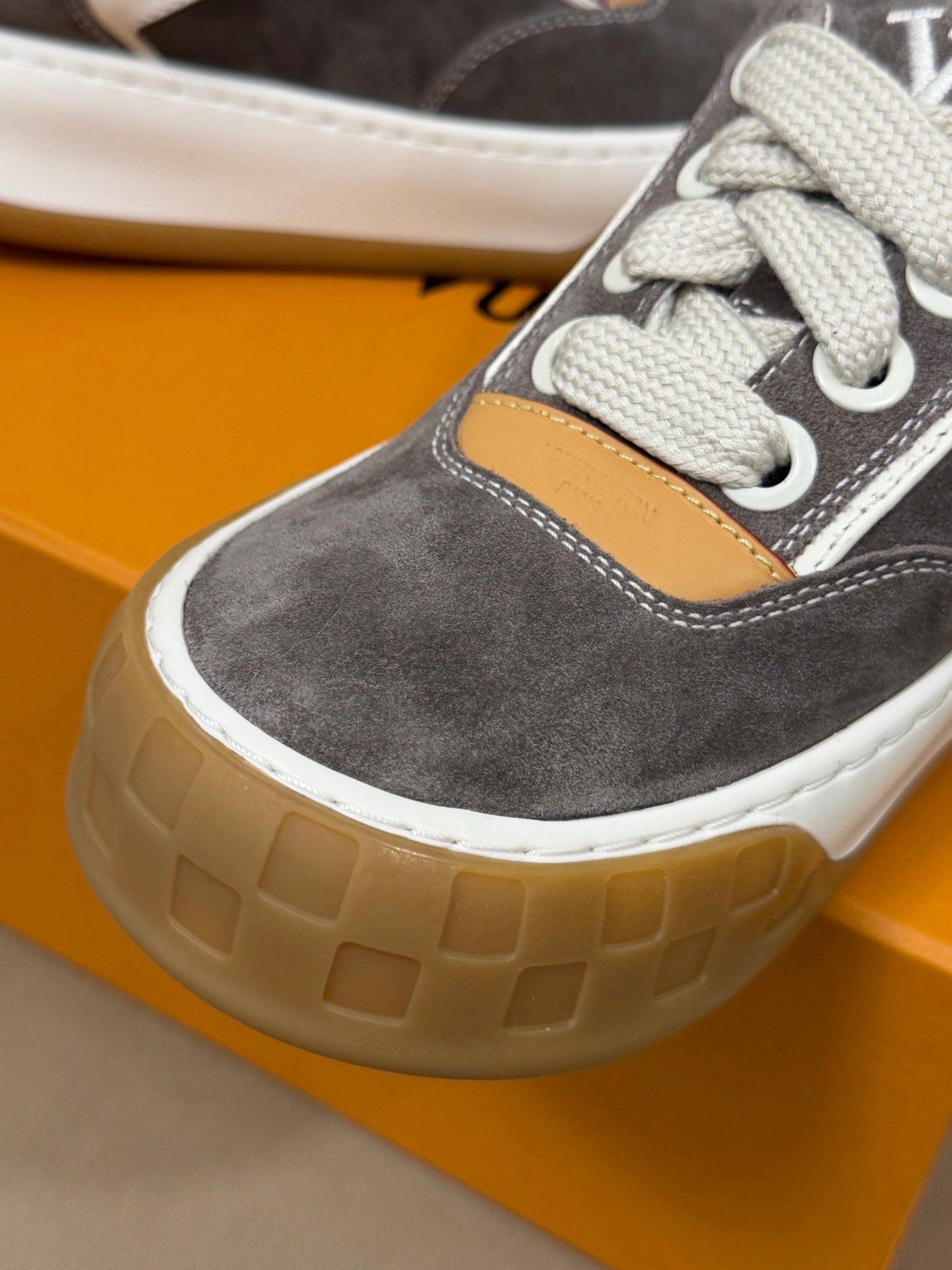 LV 25 Velcro Furry Sneakers Gray White Suede Wool 576950