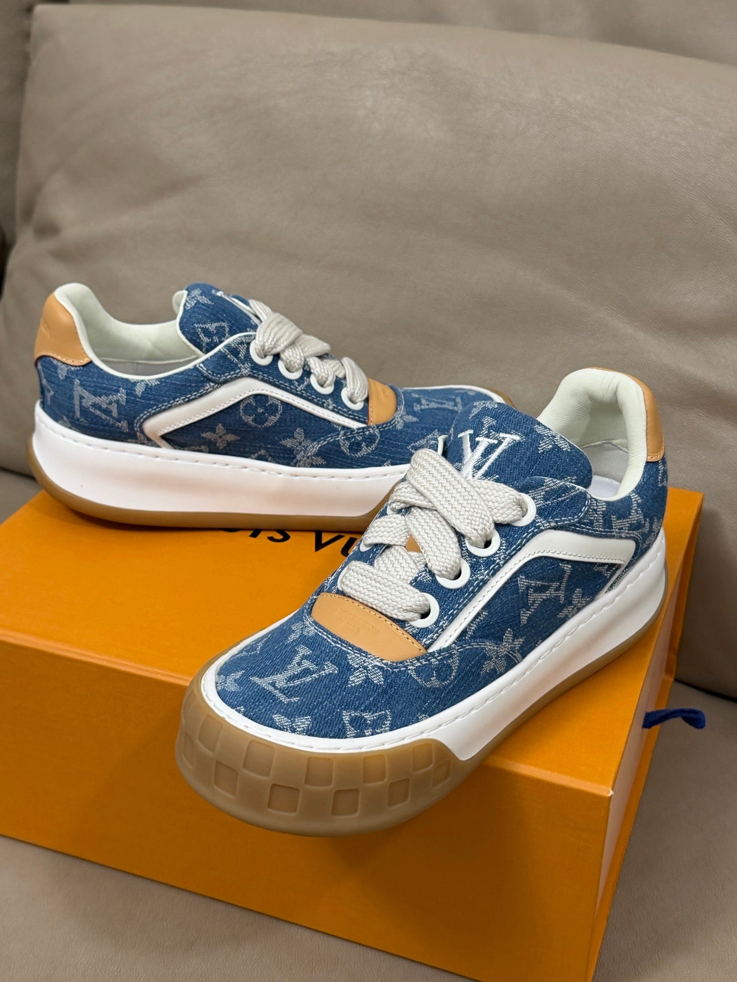 LV 25 Classic Sneakers Light Gray Blue Denim Suede 576946
