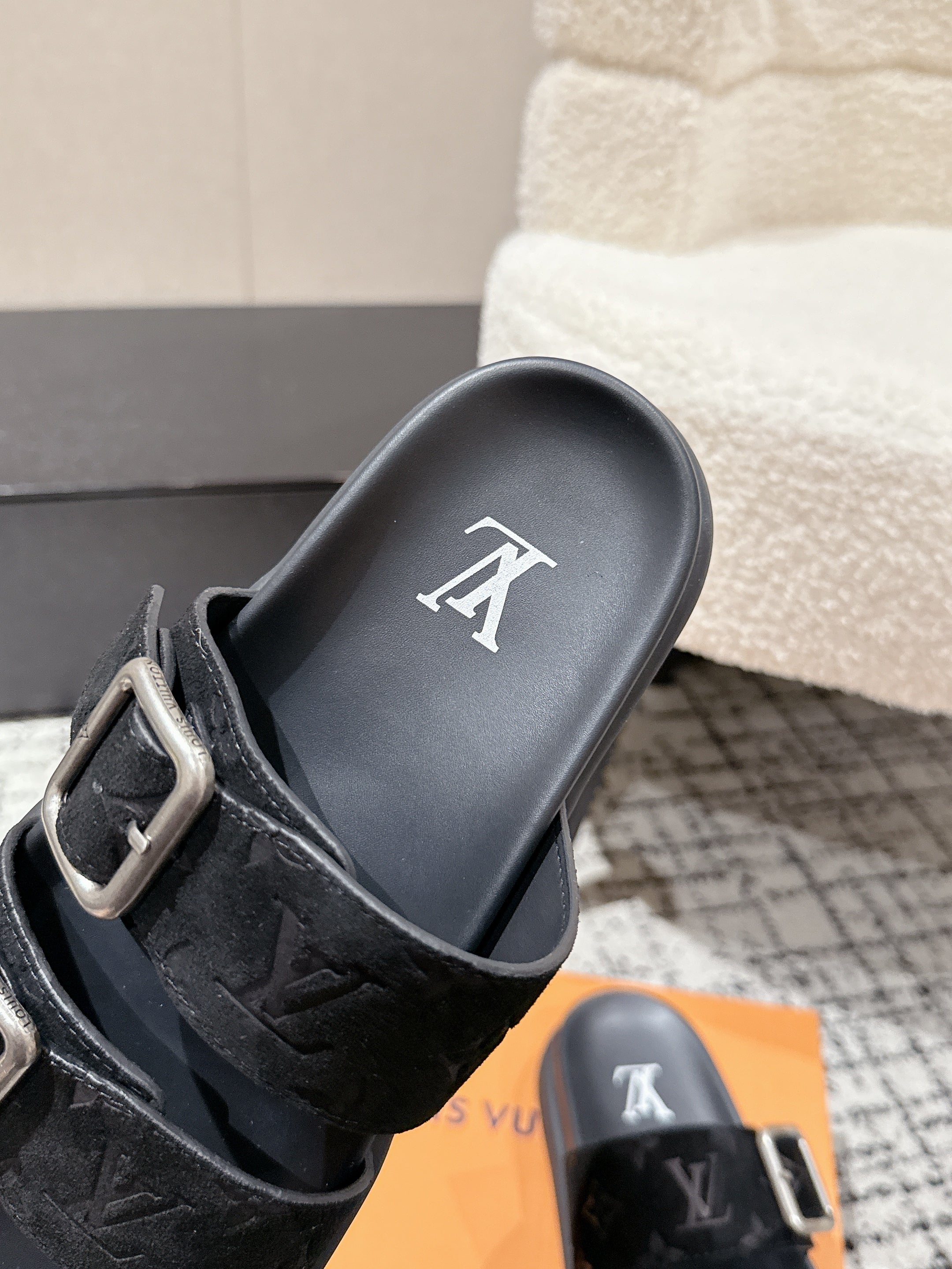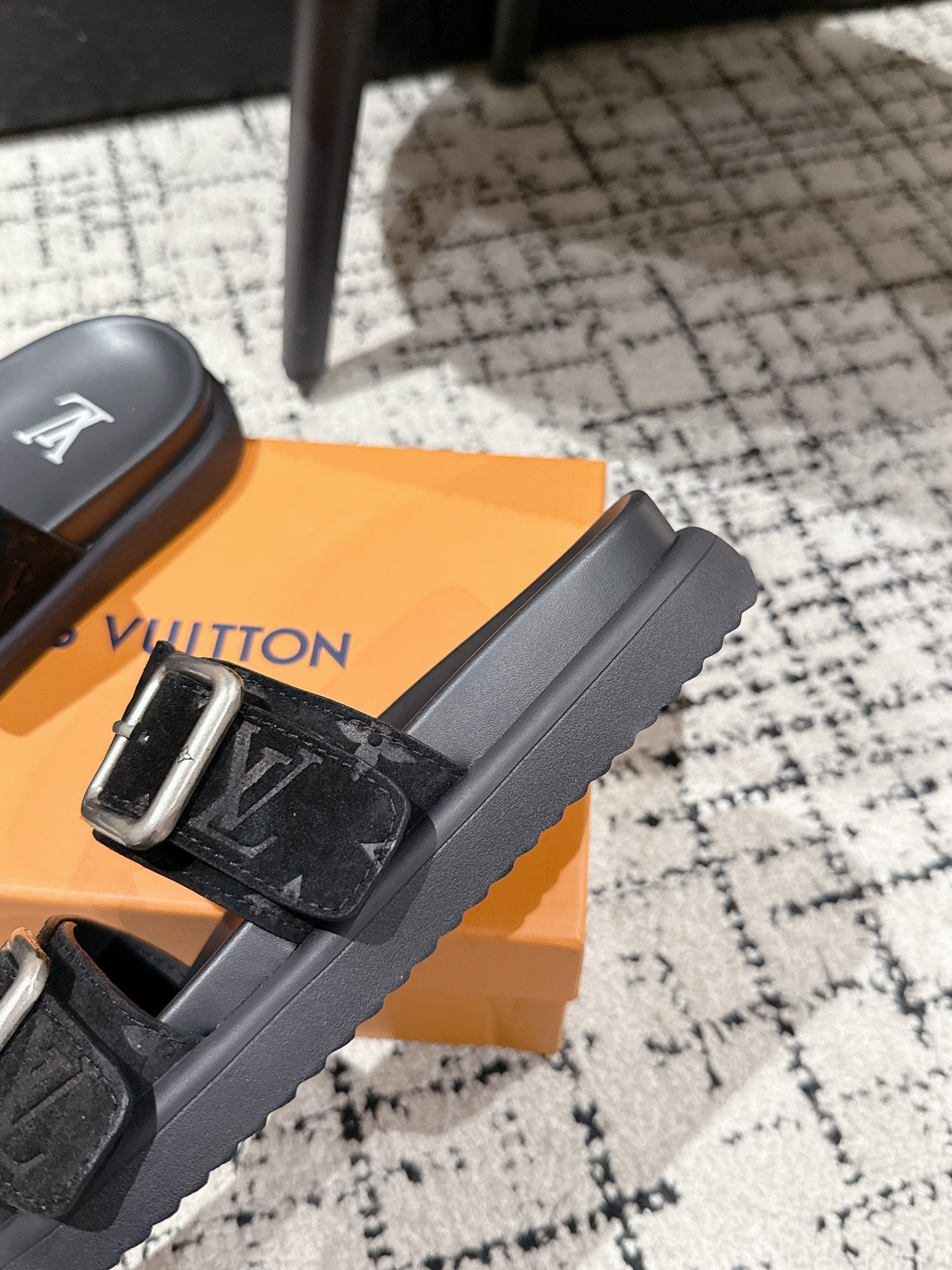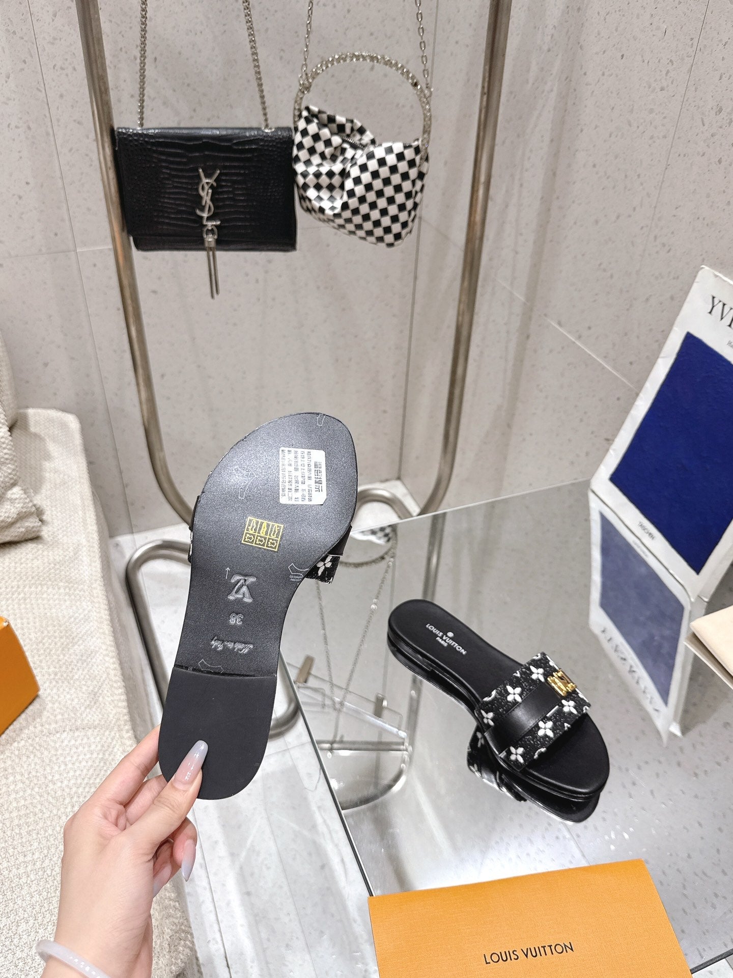 LV Flat Mules pairs raffia black brown monogram cowhide 383721