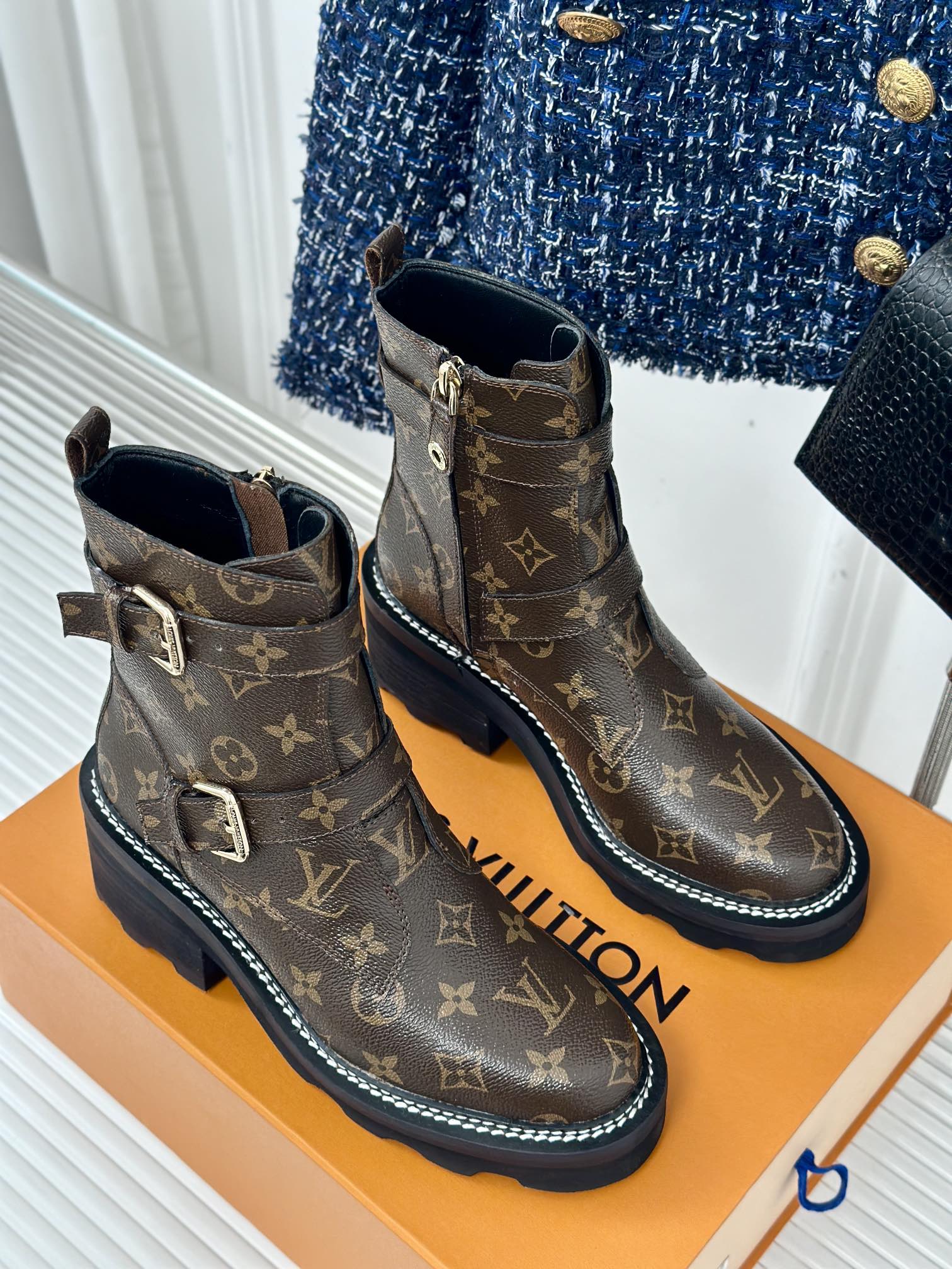 LV Beaubourg Ankle Boot 30mm Dark Brown Monogram Calfskin