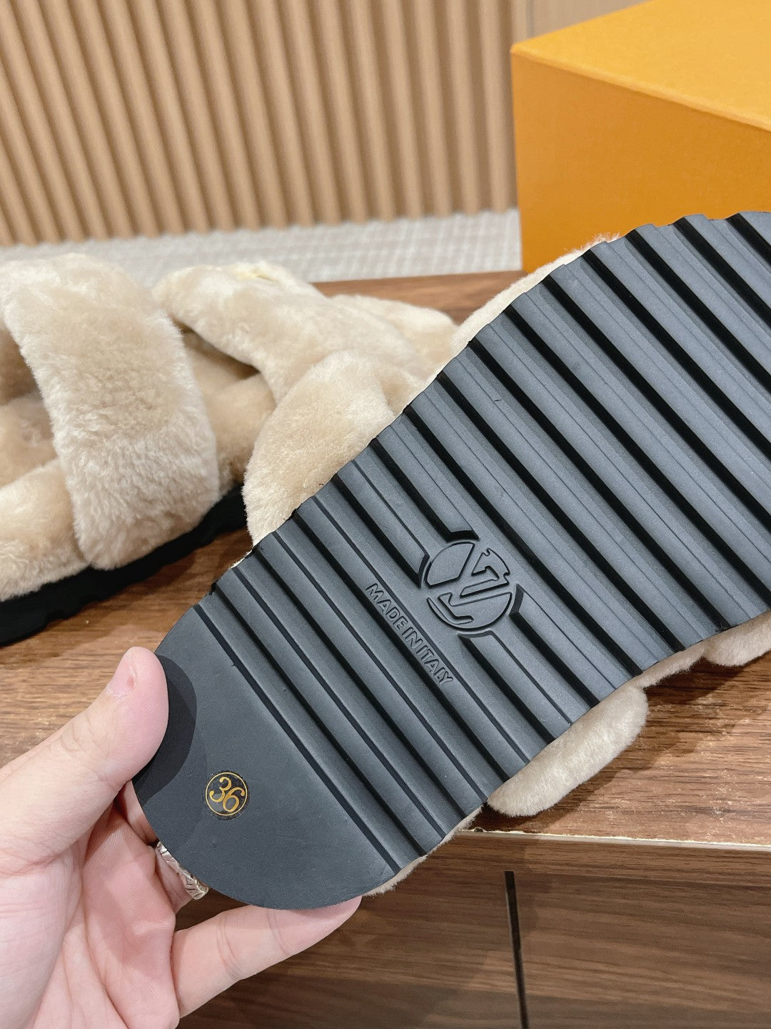 LV Cosy Flat Comfort Clog Beige Fur Lining Suede