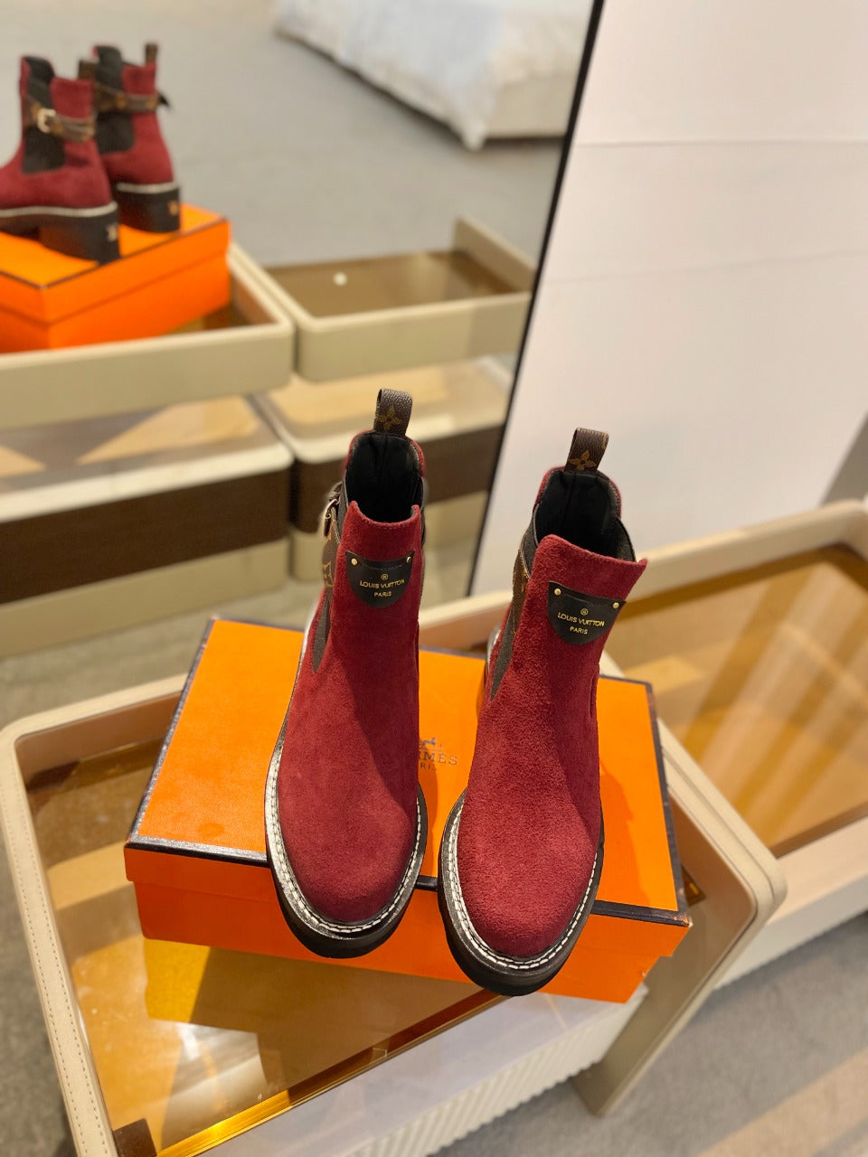 LV Beaubourg Ankle Boot 100mm Red Suede