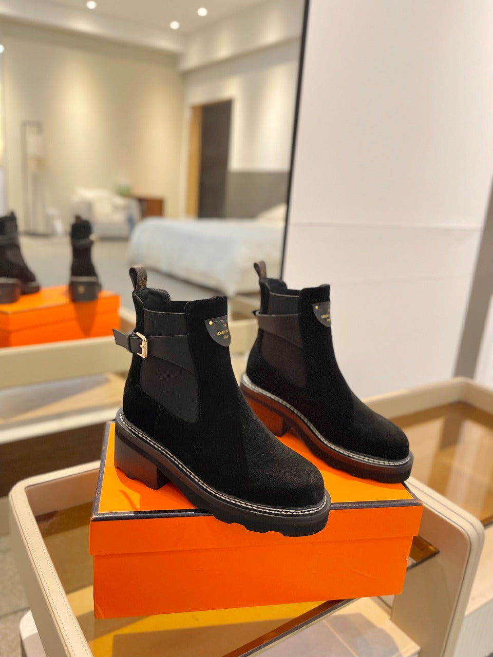 LV Beaubourg Ankle Boot 100mm Black Suede