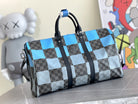 KEEPALL 50 BANDOULIERE BLUE DAMIER GRAPHITE