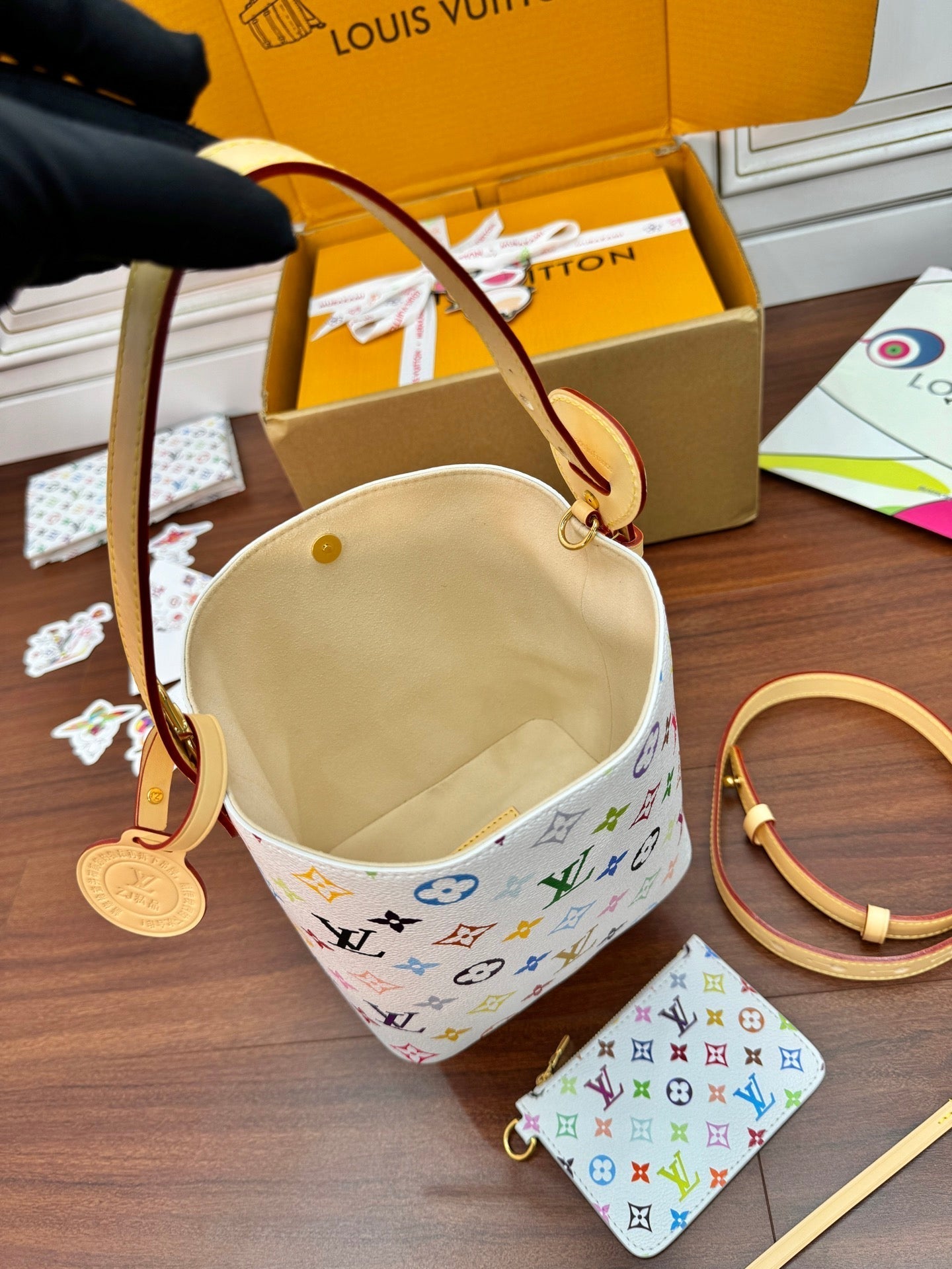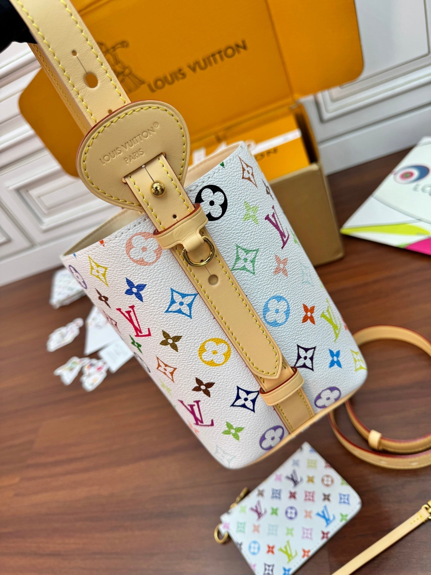 LV Bucket Bag 16cm White Multicolore Monogram Canvas 330426