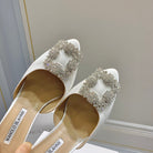 Manolo Buckle Mules 7cm White Silk 208019