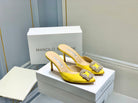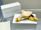 Manolo Buckle Mules 7cm Yellow Silk 208021