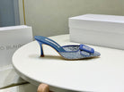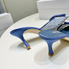 Manolo Mules 7cm Blue Hollow Lace Leather Bottom 451199