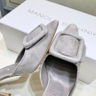 Manolo Mules 7cm Grey Suede Leather Bottom 451193