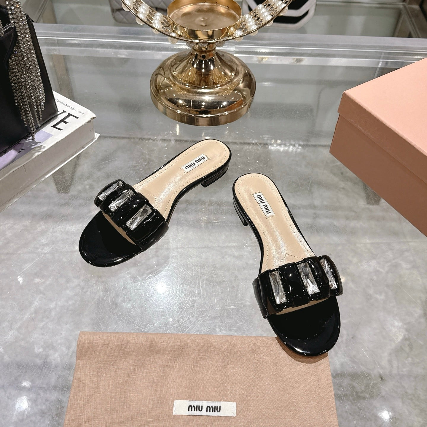 Miu 25C Slippers Black Patent Leather 235322