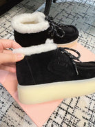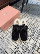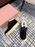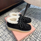 Miu Ankle Boots Black Fleece Lining Cow Suede