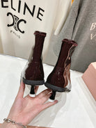 Miu Ankle Boots Pointed Toe Red Brown Lambskin