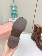 Miu Leather Laced Booties Chestnut Brown Cowhide