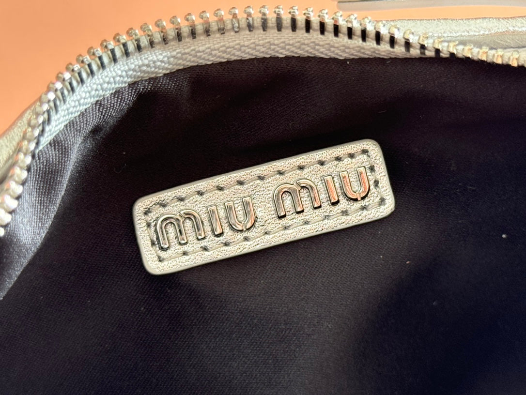 miuwander hobo 23 silver metalic matelasse leather