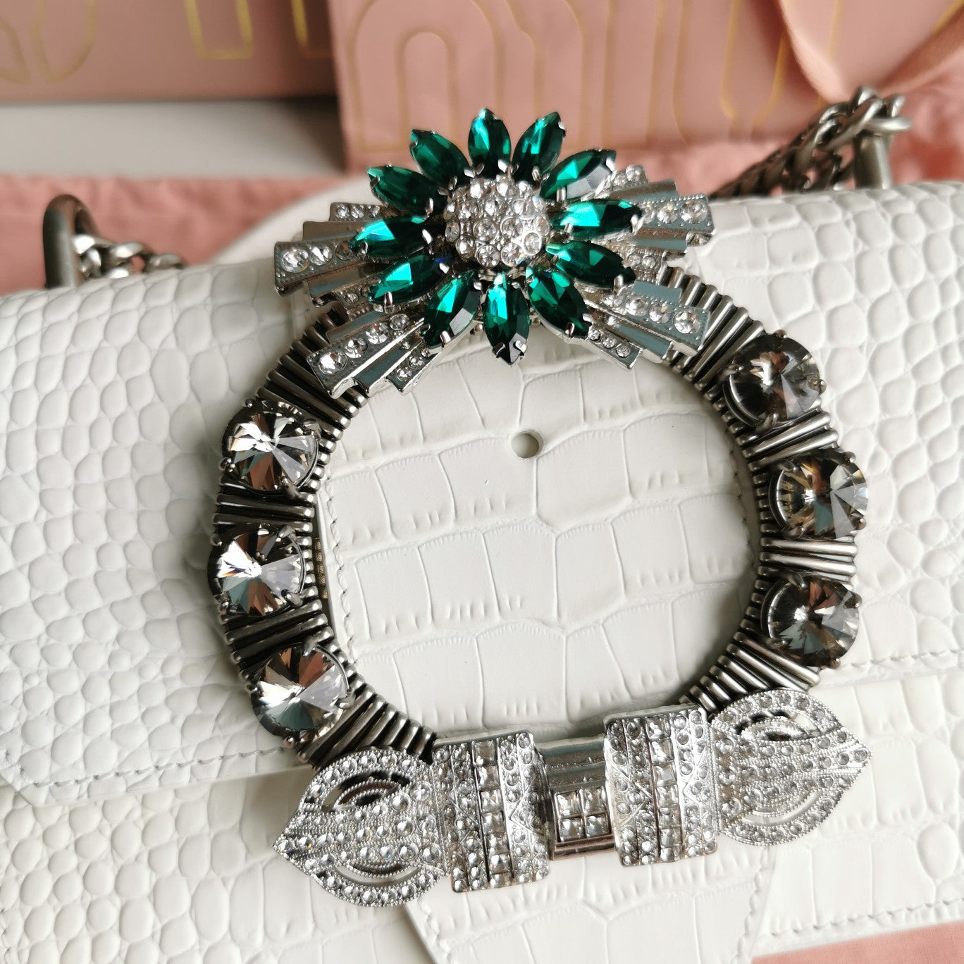 LADY 20 HANDBAG IN CROCODILE PATTERN WHITE CREAM CALFSKIN