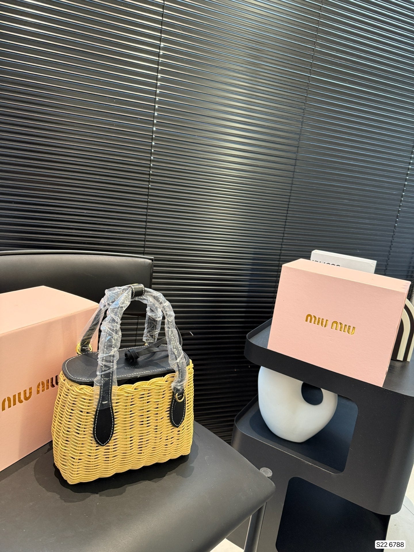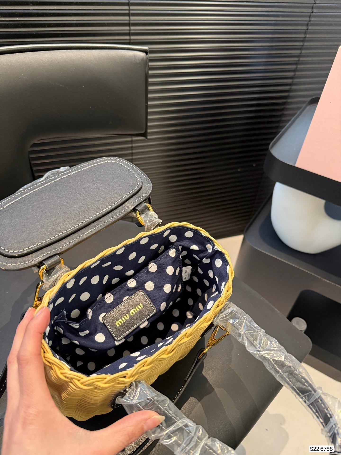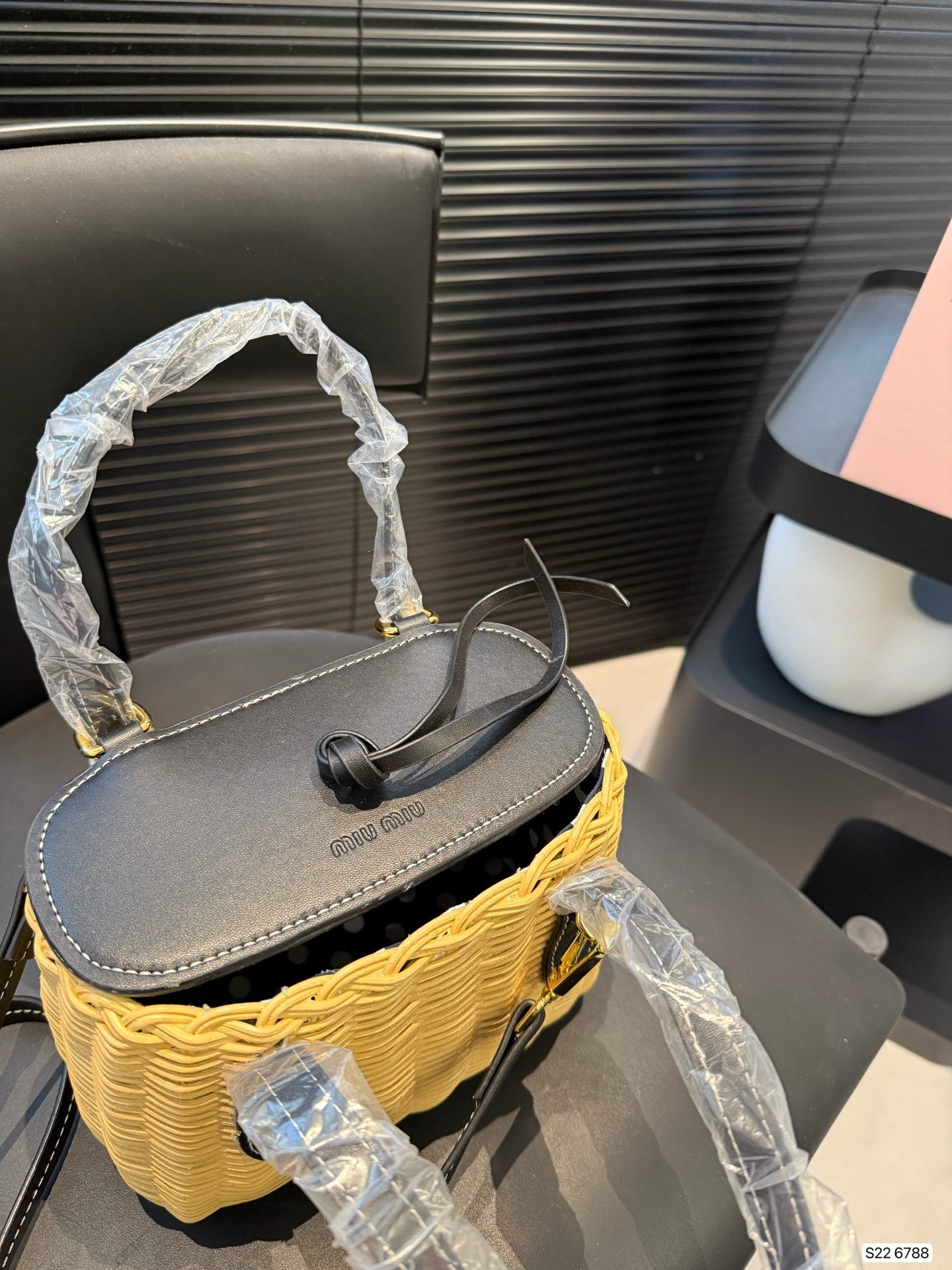 WOVEN HOLLOW BAG 23 IN BEIGE RATTAN AND BLACK CALFSKIN TRIM