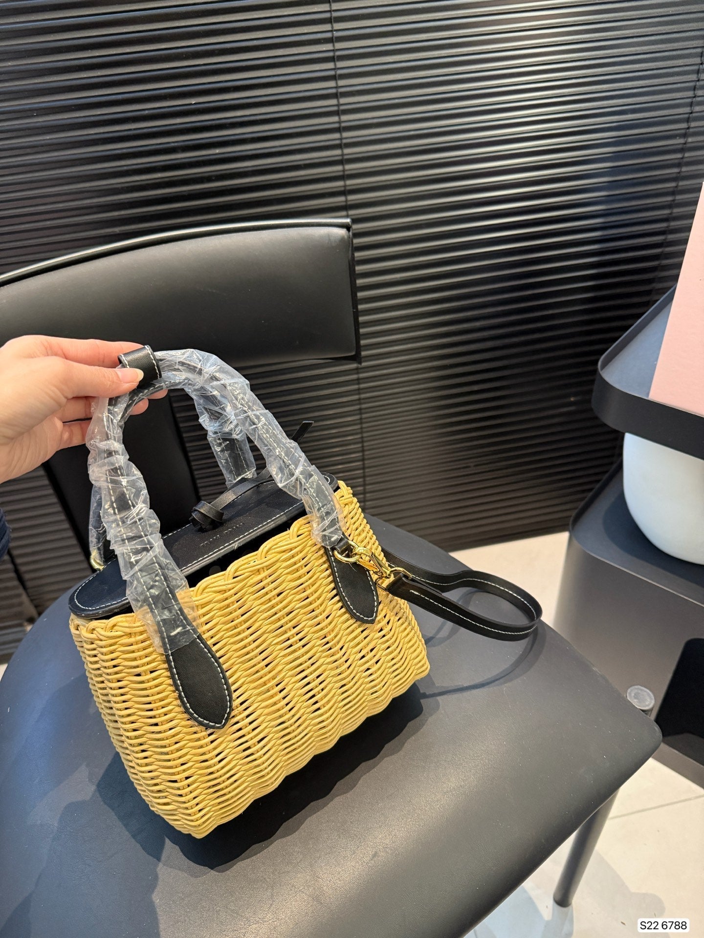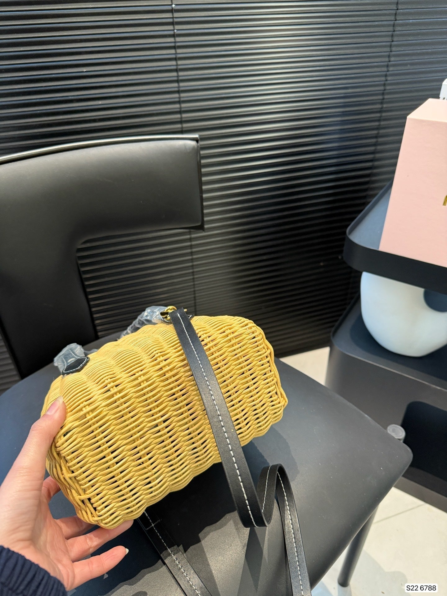 WANDER WICKER HOBO BAG 23 IN TAN BROWN HANDWOVEN WITH BLACK CALFSKIN LOGO