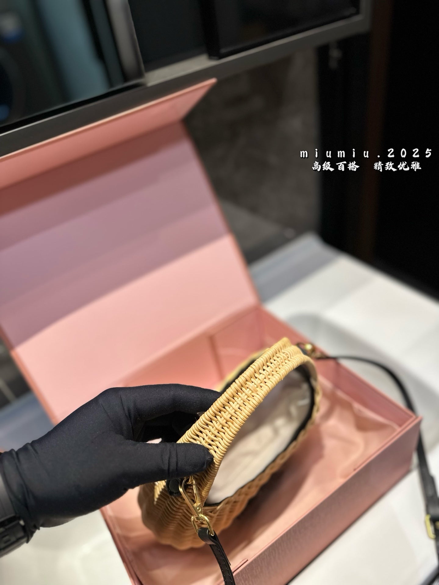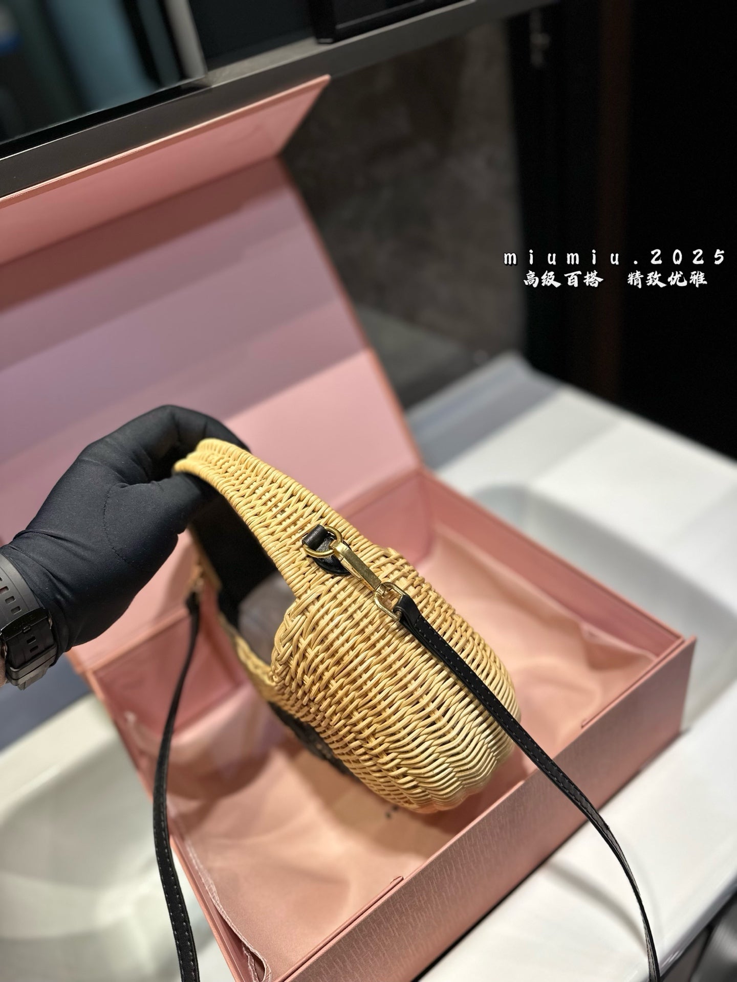 WANDER WICKER HOBO BAG 13 IN TAN BROWN HANDWOVEN WITH WHITE CALFSKIN LOGO