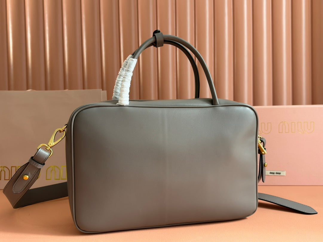 BEAU TOP HANDLE BAG 28 IN LAVA GREY GLOSSY CALFSKIN GOLD HARDWARE