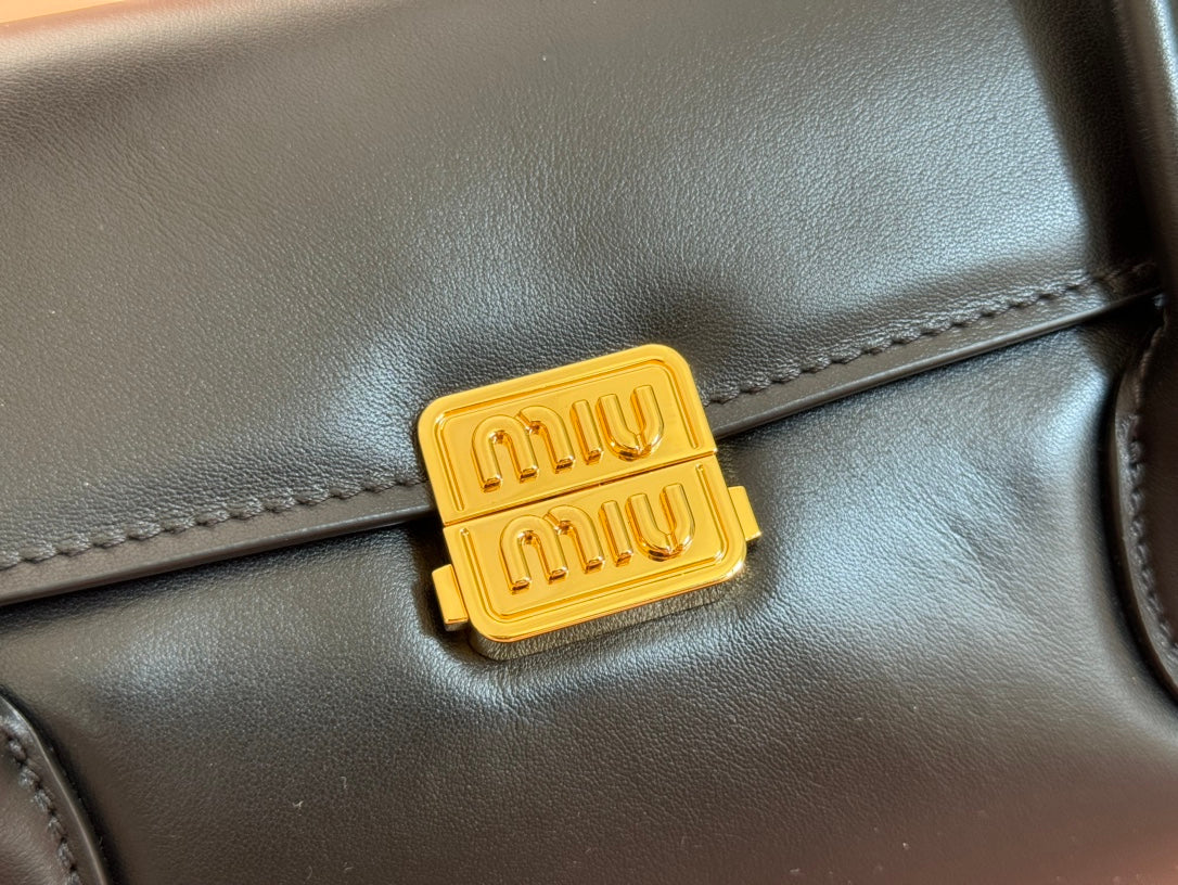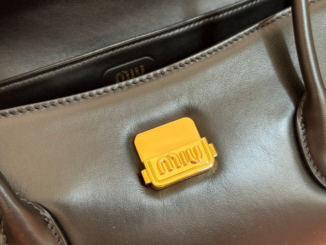 BEAU TOP HANDLE BAG 28 IN CHOCOLATE BROWN GLOSSY CALFSKIN GOLD HARDWARE