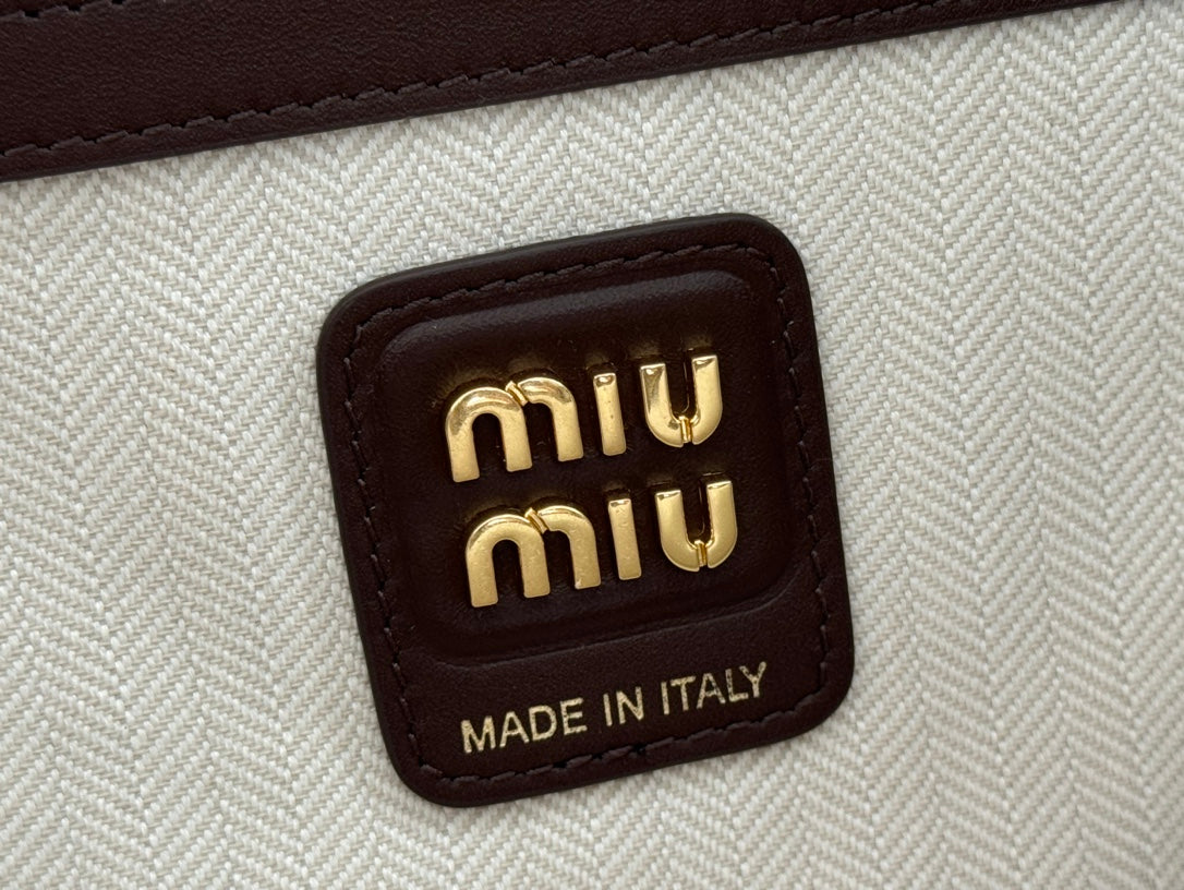 BEAU TOP HANDLE BAG 34 IN WHITE CANVAS AND WALNUT BROWN CALFSKIN TRIM