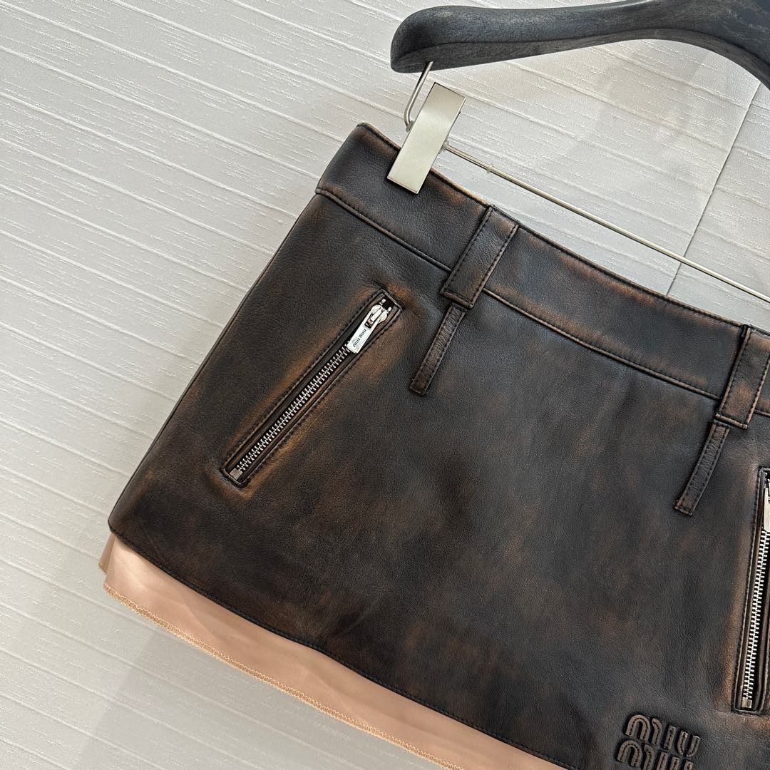 Miu Miu 25 Short Skirt Black Brown Sheepskin