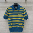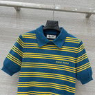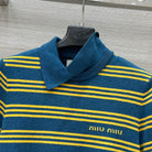 Miu Miu 25 Striped Polo Top Blue Yellow Wool