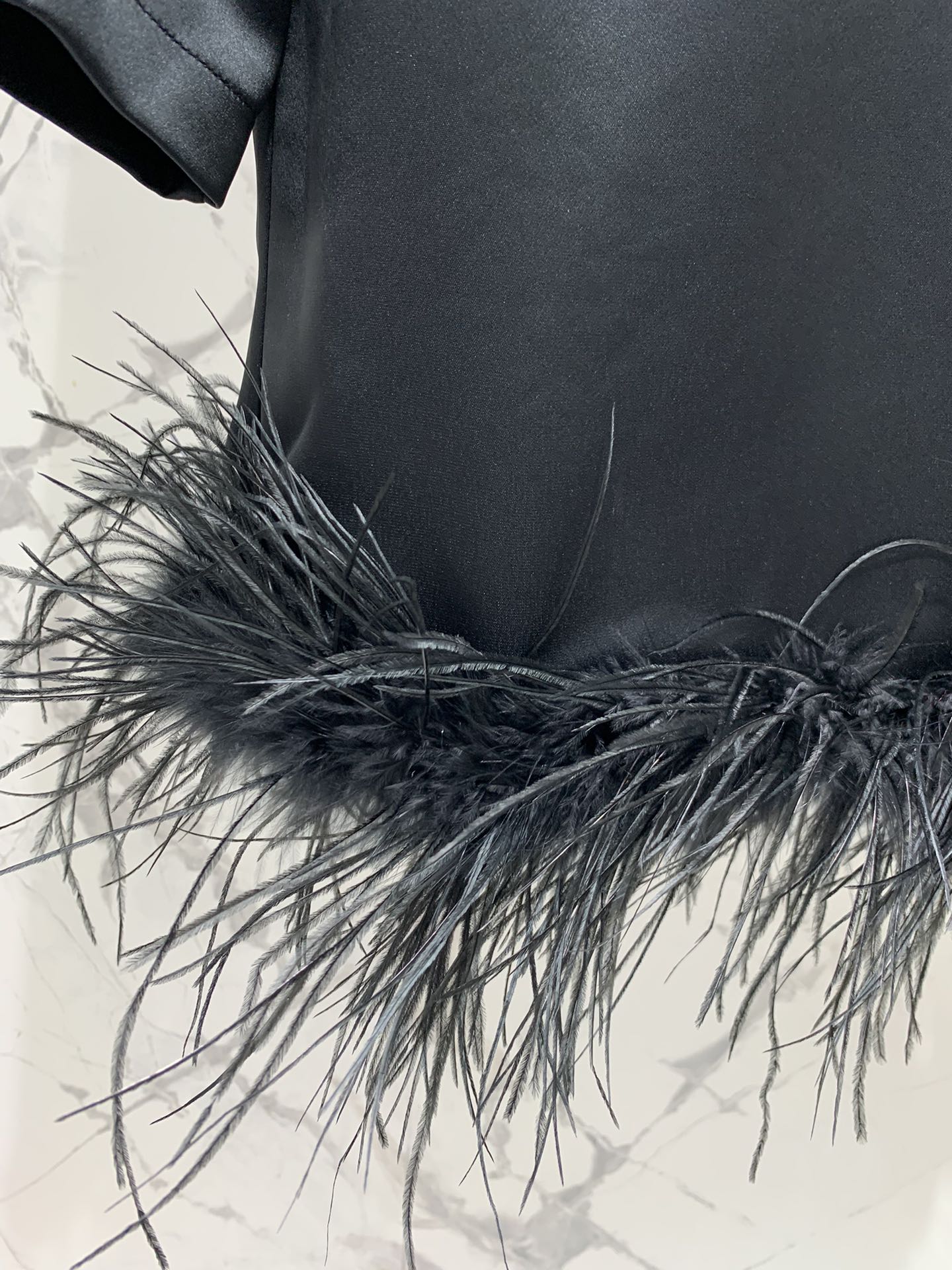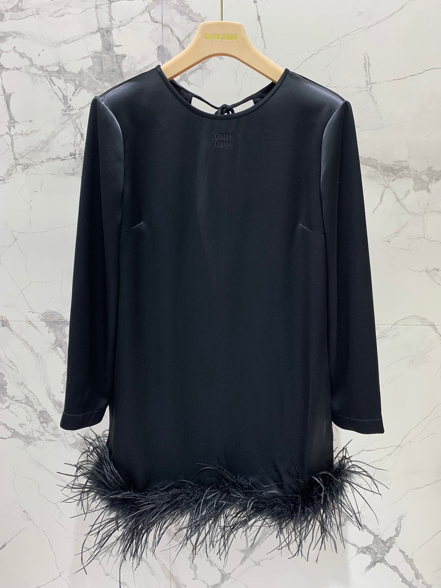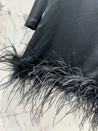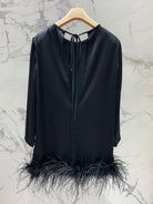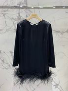 Miu Miu Ostrich Feather Dress Black Acetate Satin Fabric