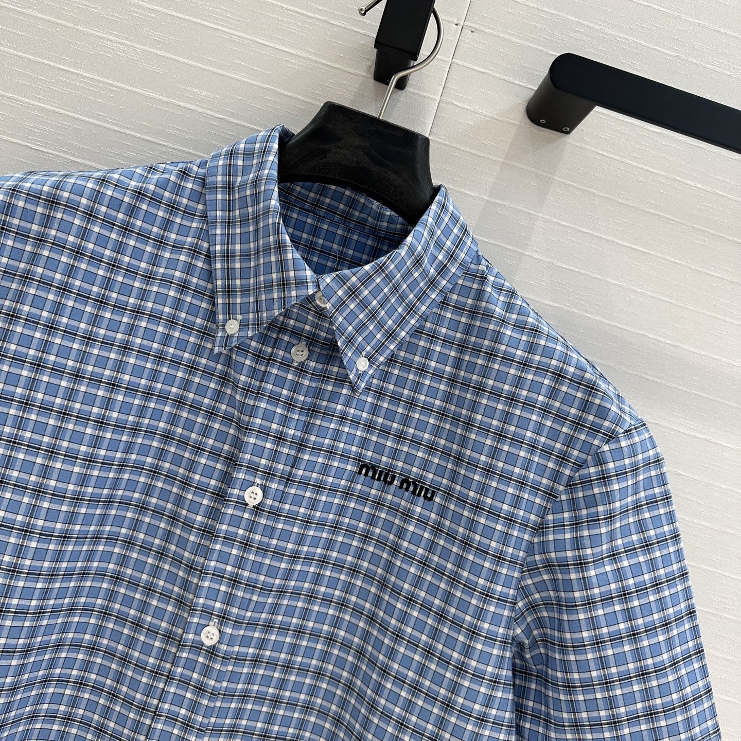 Miu Miu Plaid Pleated Shirt Dress Blue Cotton