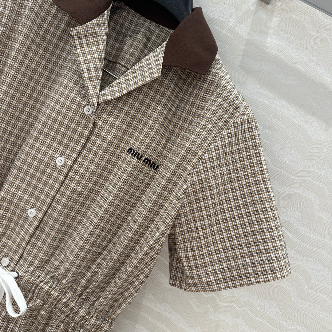 Miu Miu Short-sleveed Shirt Dress Brown Cotton