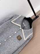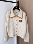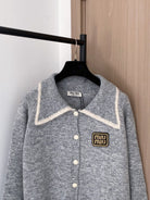 Miumiu 2025 Patch Cardigan Gray and Beige Wool