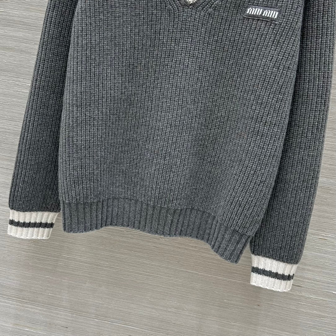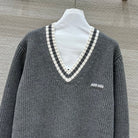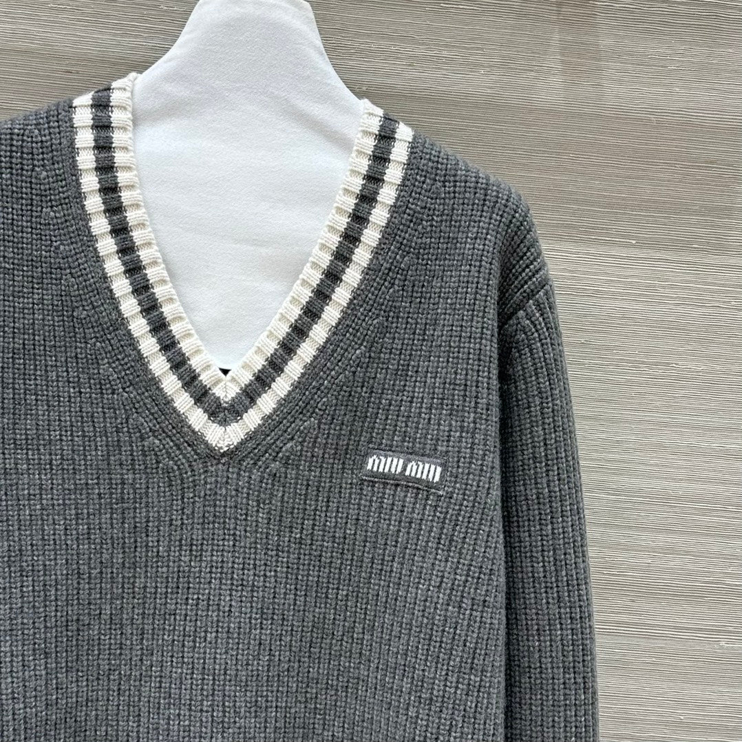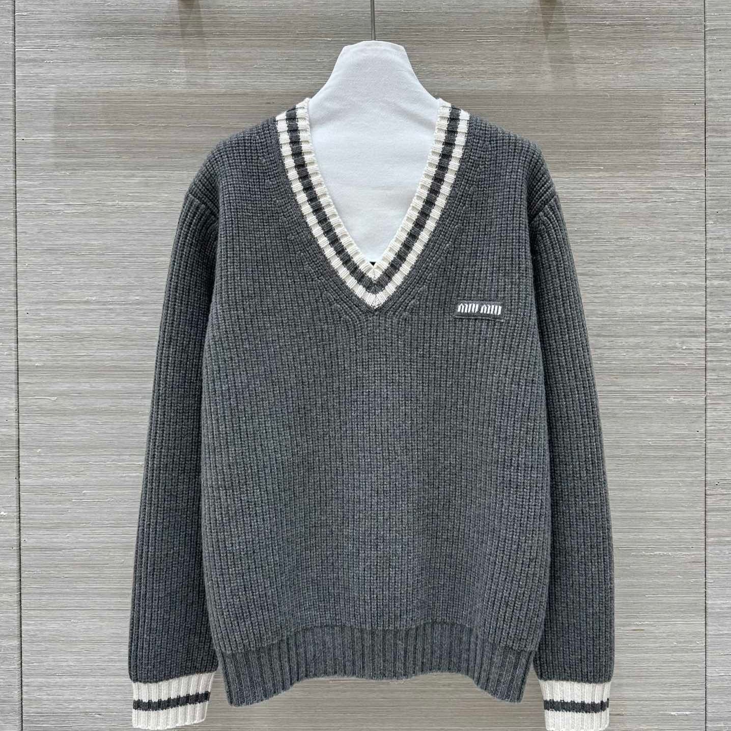 Miumiu V-neck knitted top Gray Cashmere