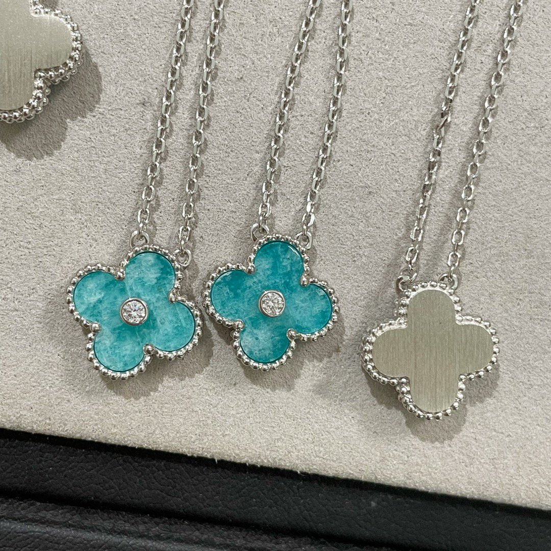 CLOVER 1 DIAMOND AMAZONITE SILVER NECKLACE