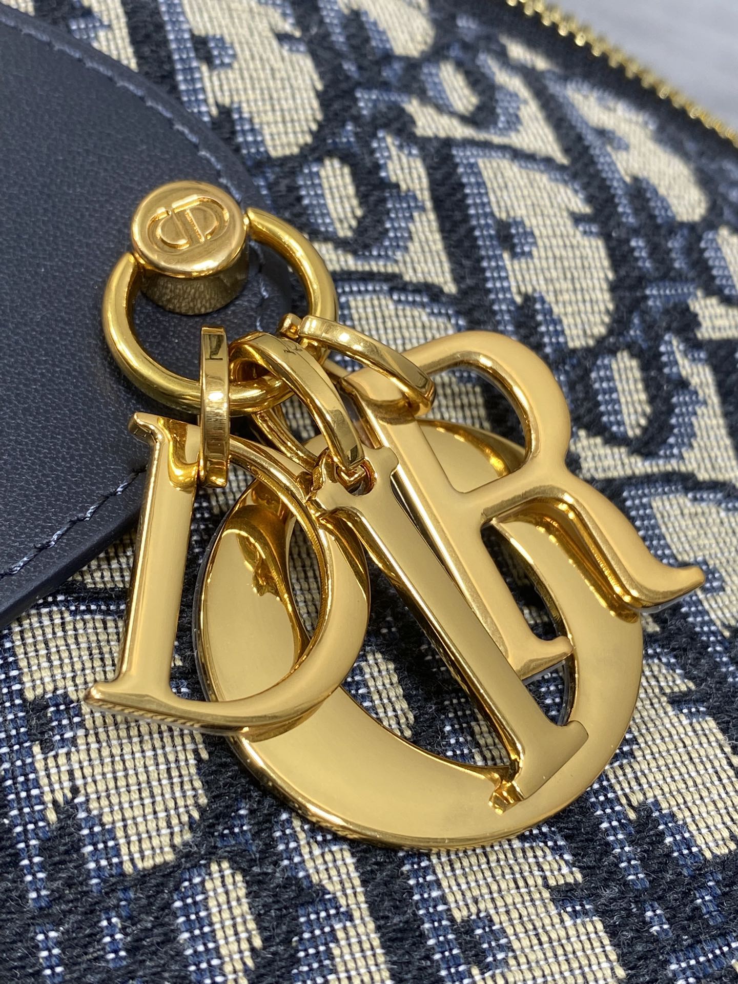 Dior 2025 Bag 19cm Navy Blue mix Beige Oblique Fabric mix Leather 272830
