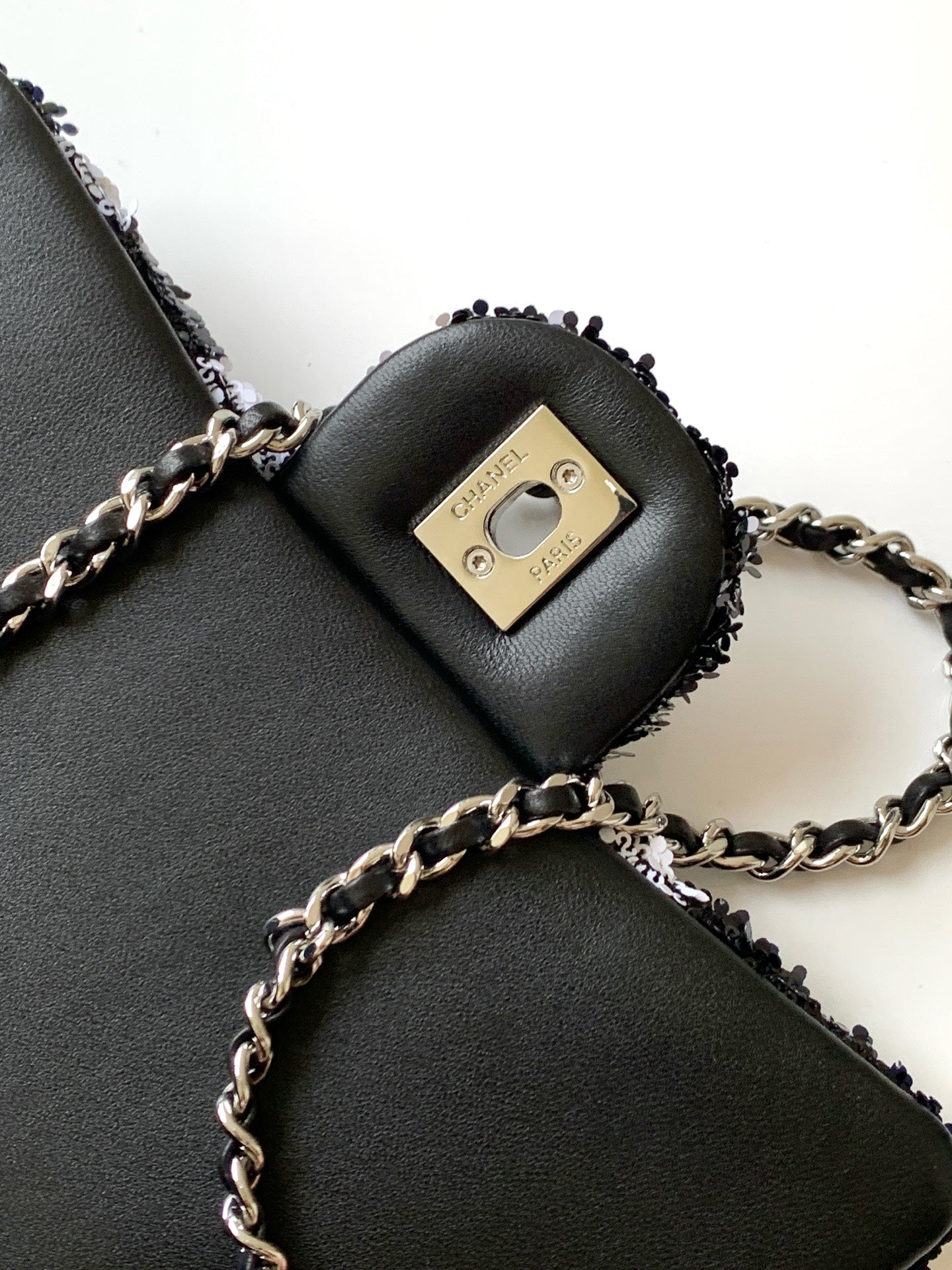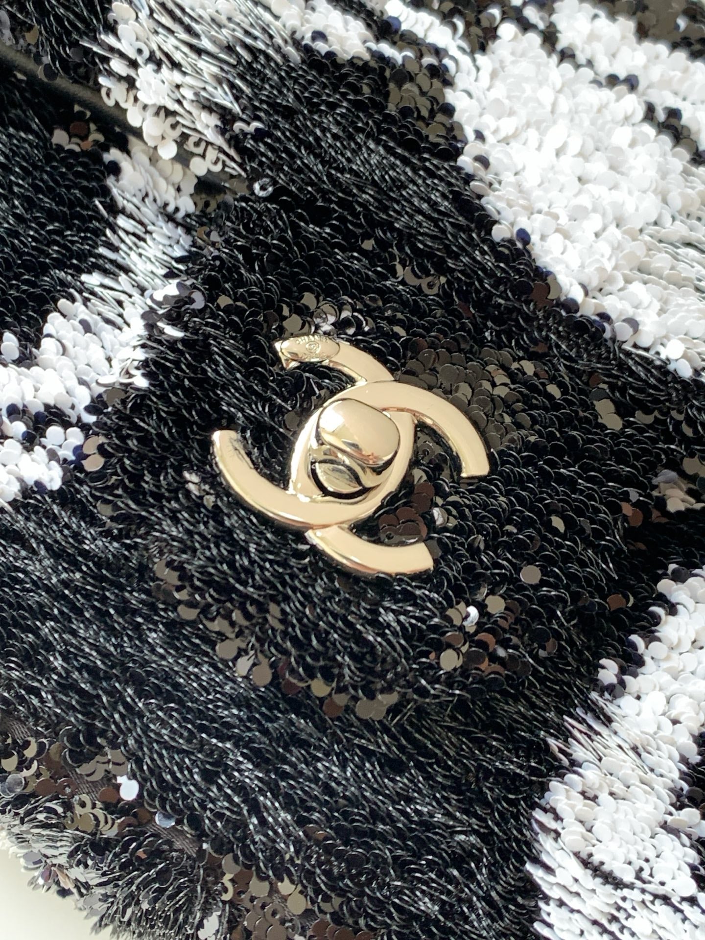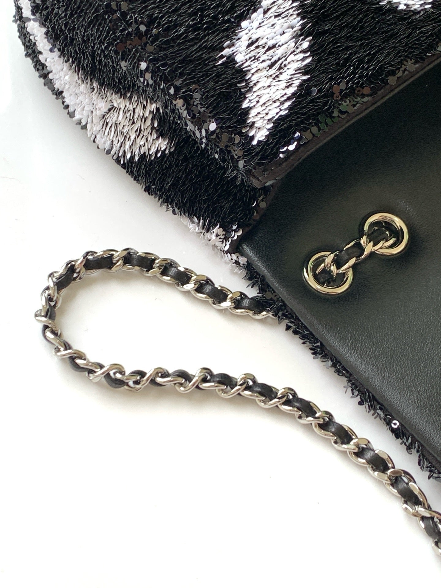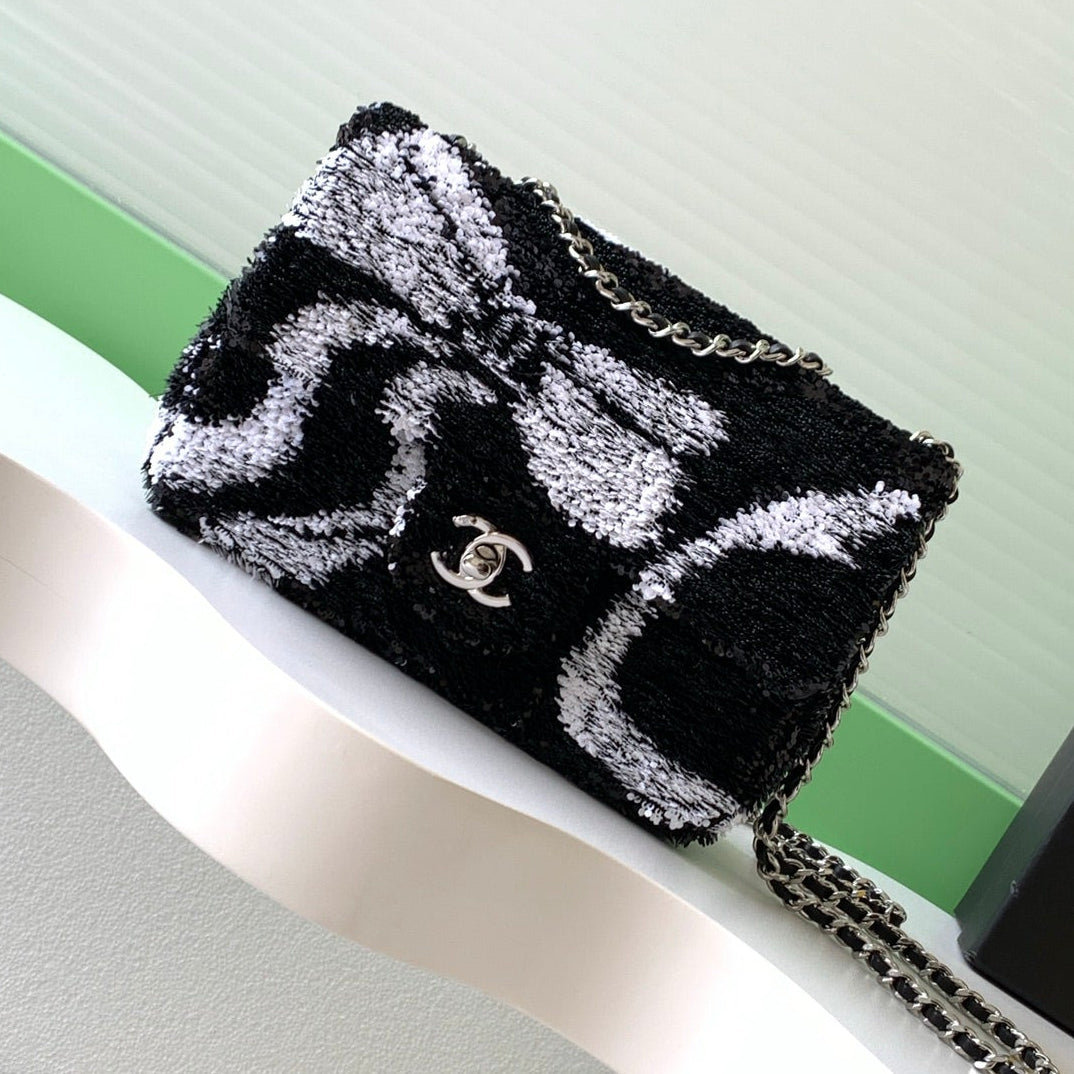 CC 2025 Flap Bag Black White Sequin 298200