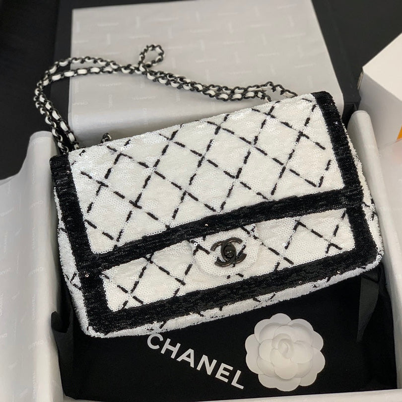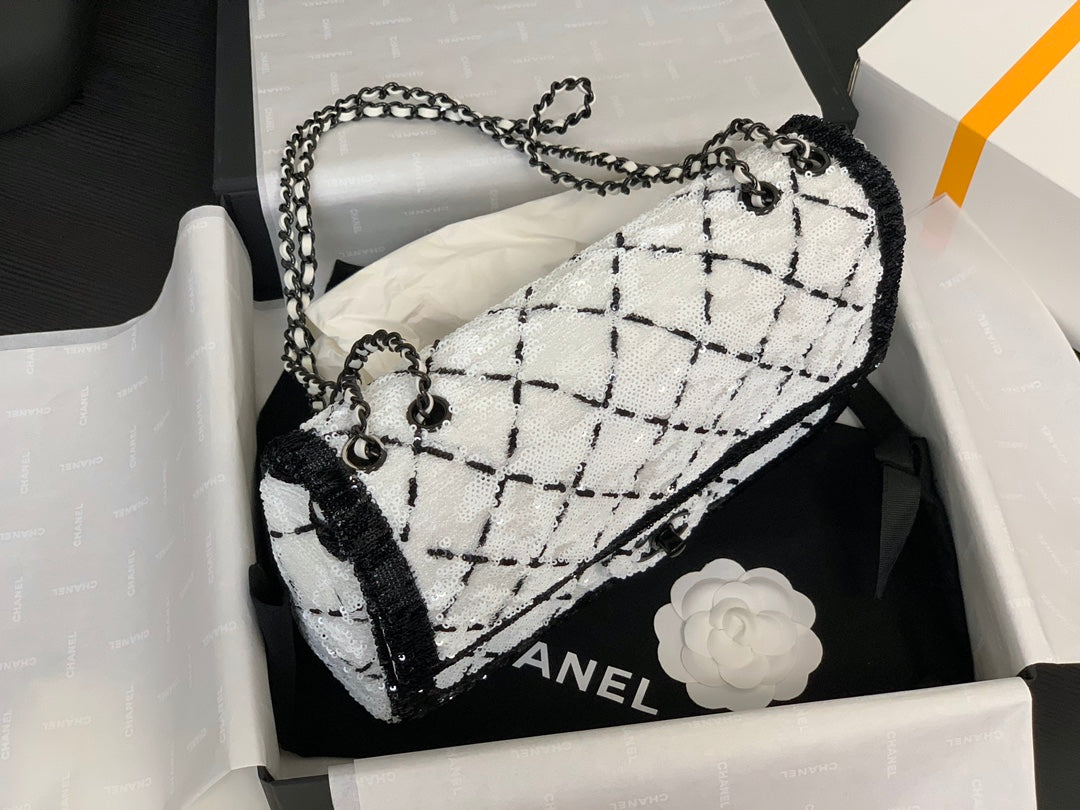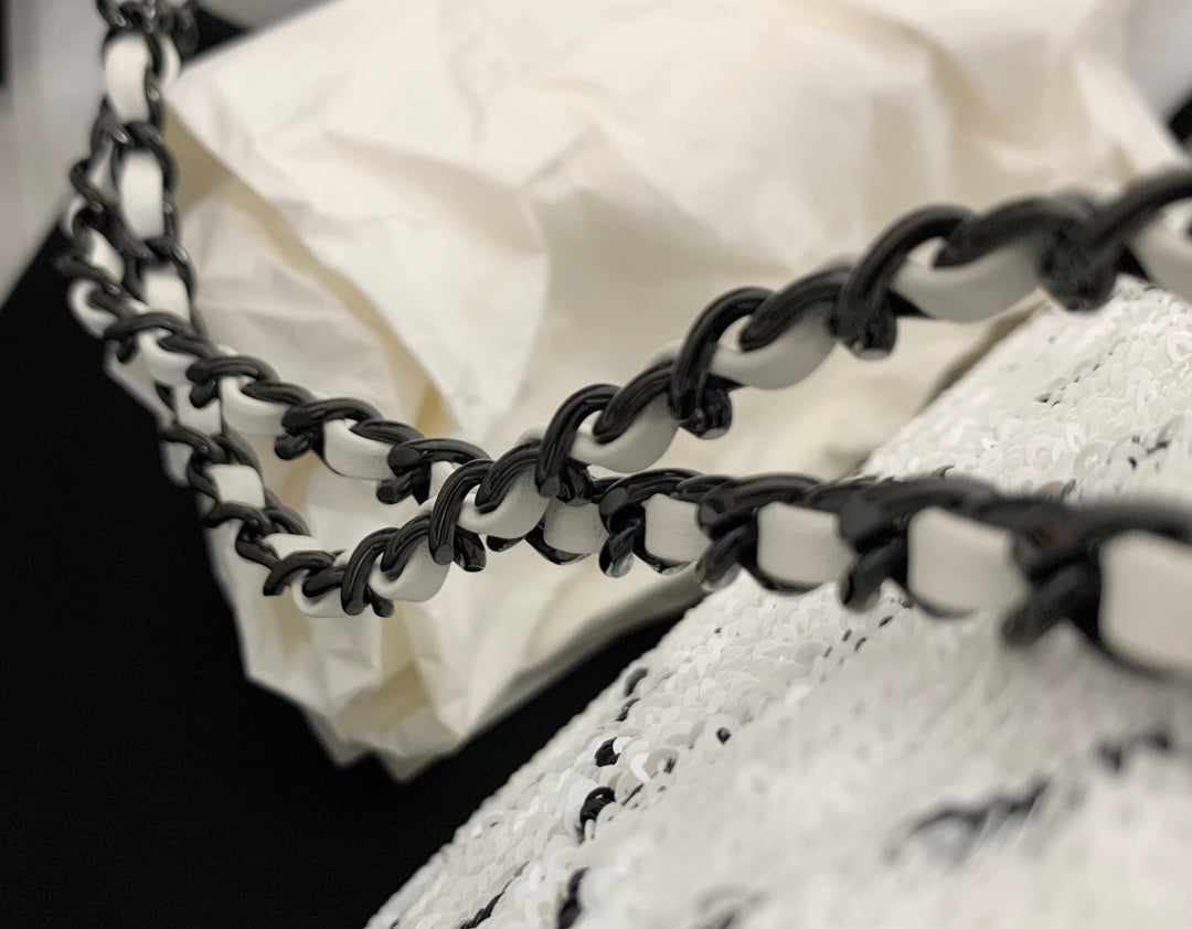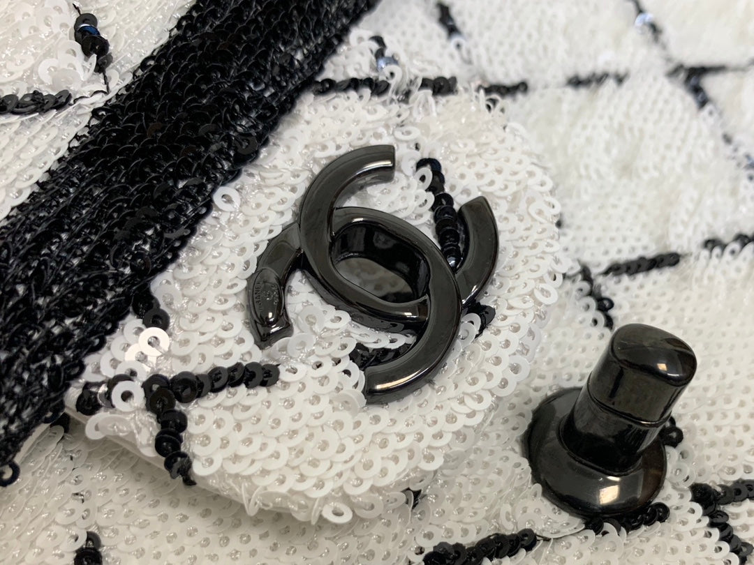 CC 2025 Flap Bag Black White Sequin 298964
