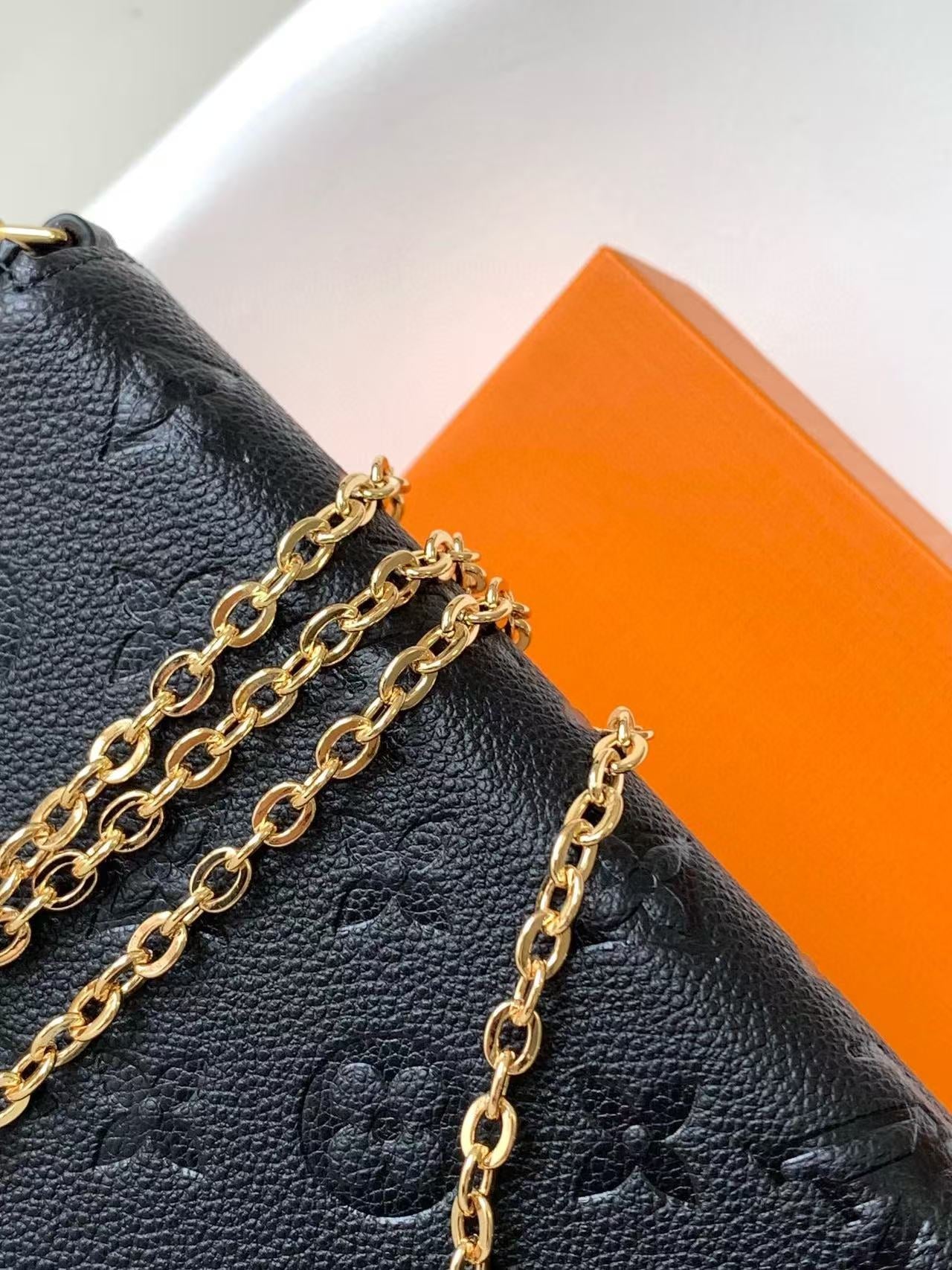 LV Pochette Félicie Chain Bag Black Grain Cowhide