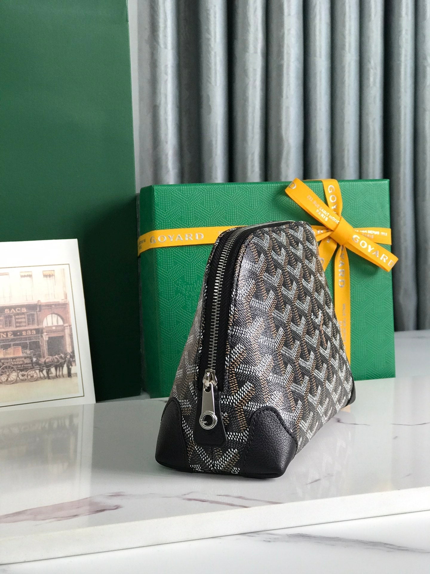 VENDÔME COSMETIC POUCH 17 IN BLACK GOYARDINE CANVAS AND CALFSKIN TRIM