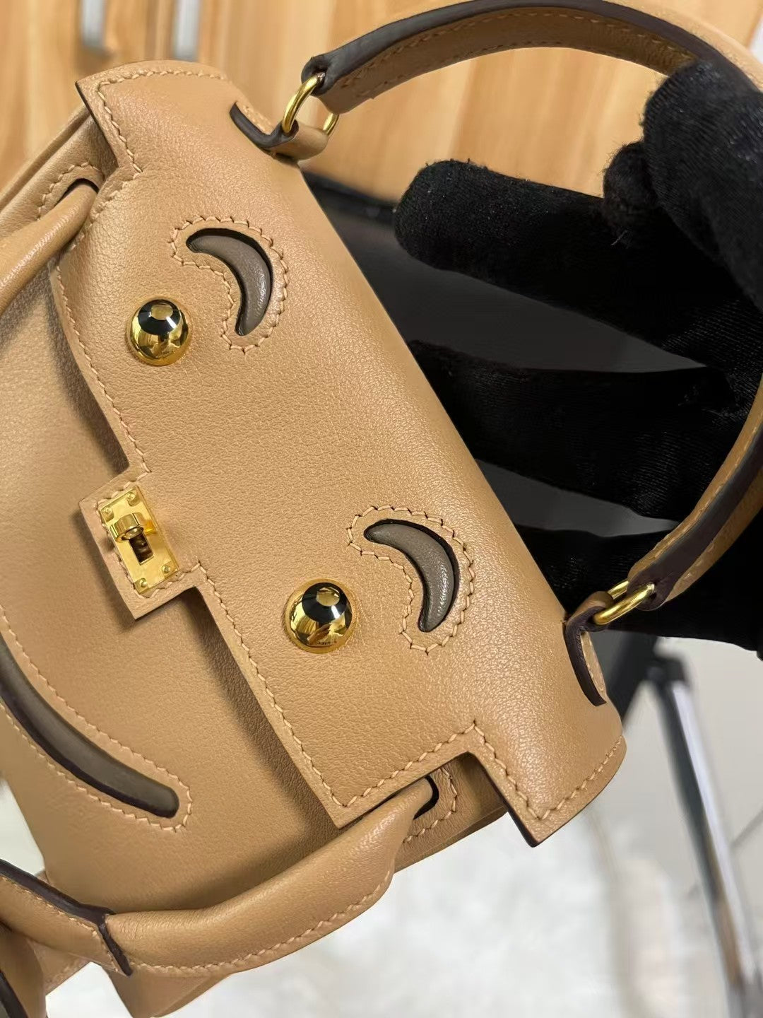 HM Kelly Desordre 20cm Etoupe Grey Epsom Gold Hardware