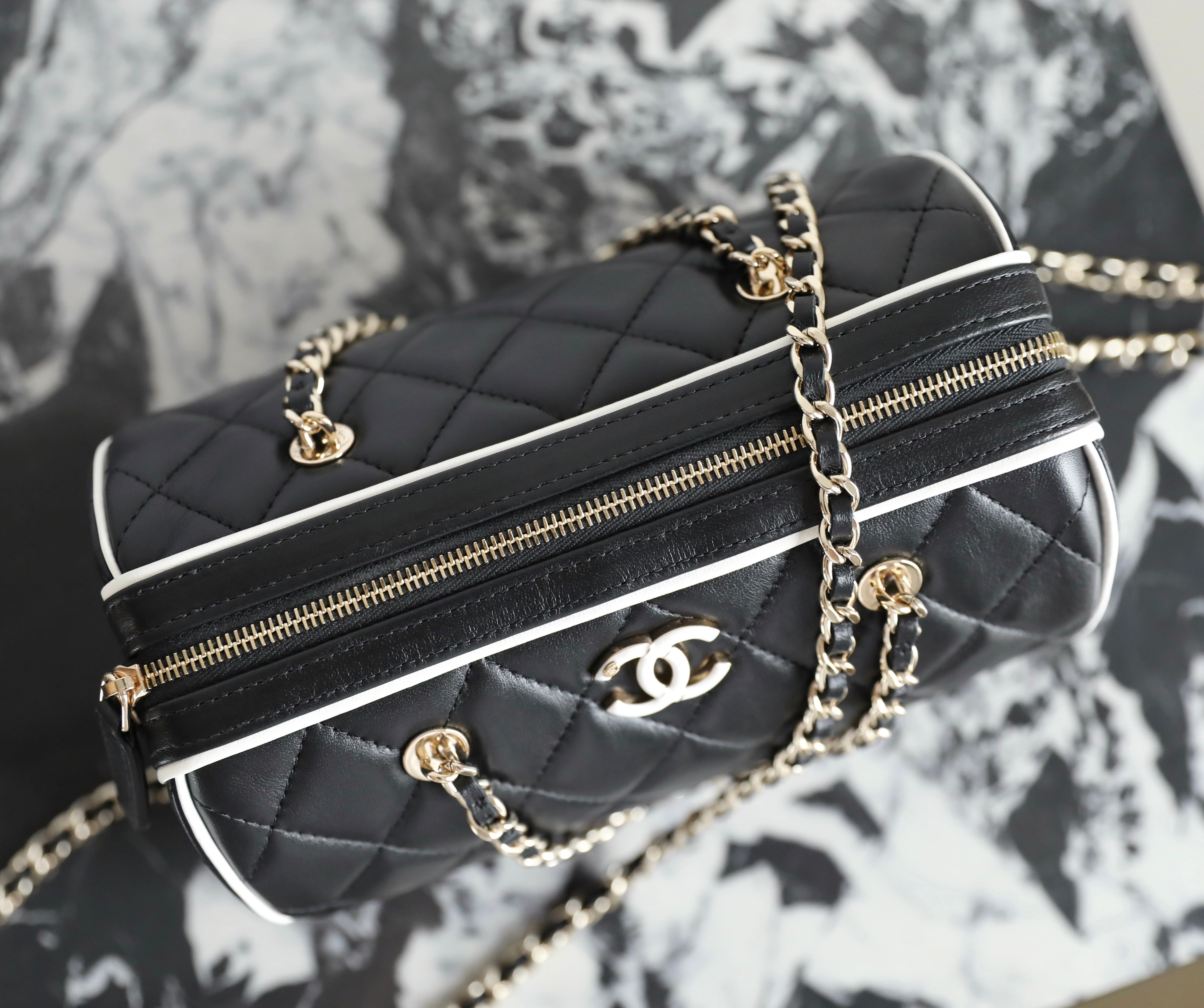 CC 25C Hobo Bag 40cm Black White Lambskin Gold Hardware