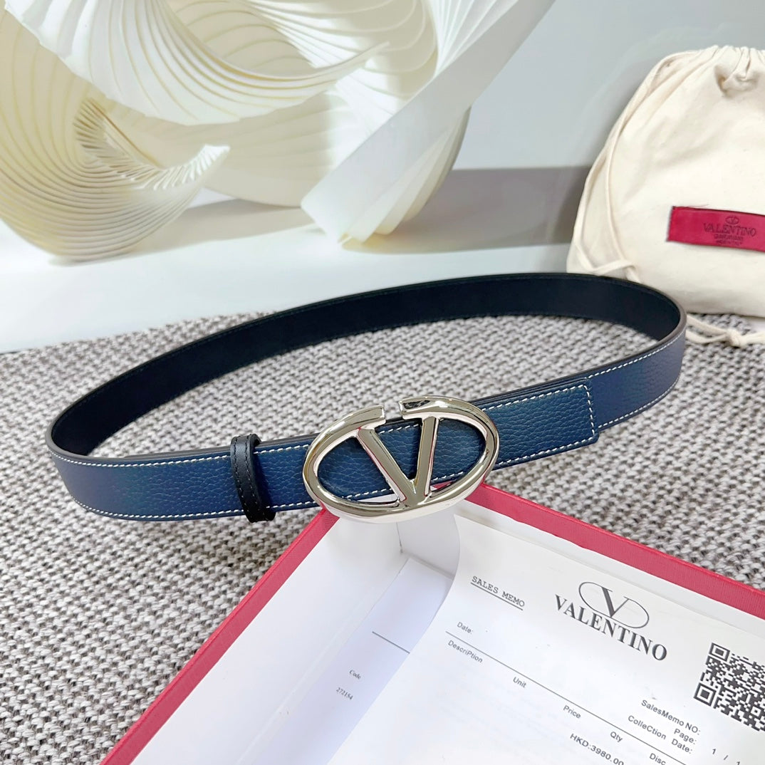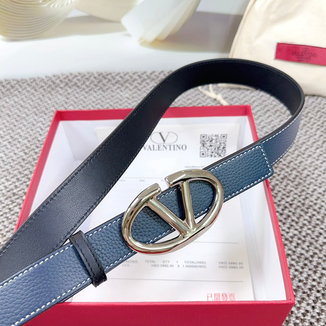 The Bold Edition Reversible Belt 30mm Blue Black Grained Calfskin Silver Buckle