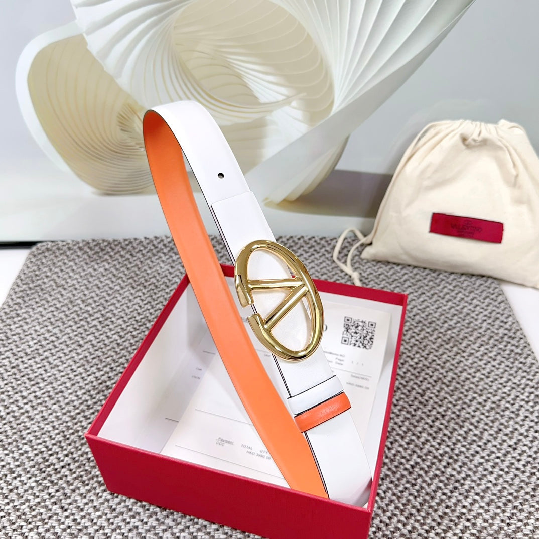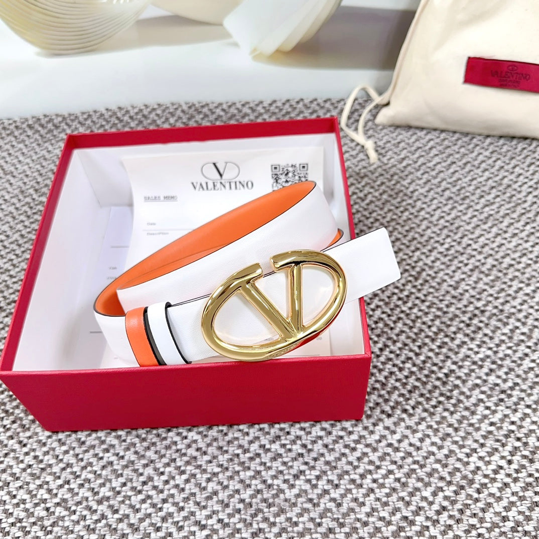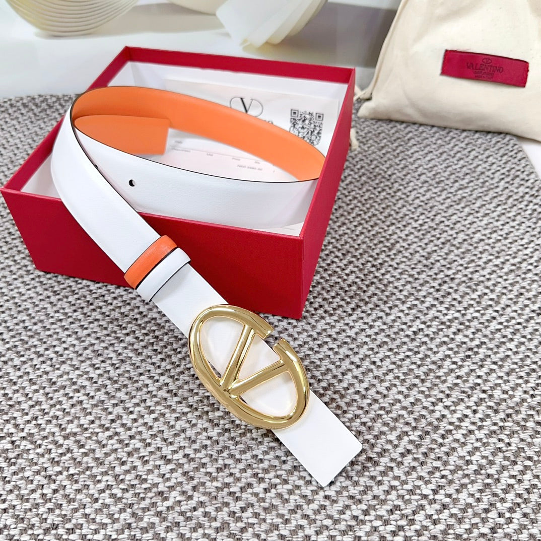 The Bold Edition Reversible Belt 30mm White Brown Calfskin Gold Buckle