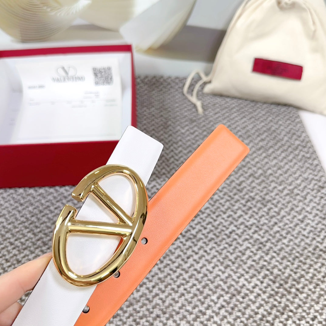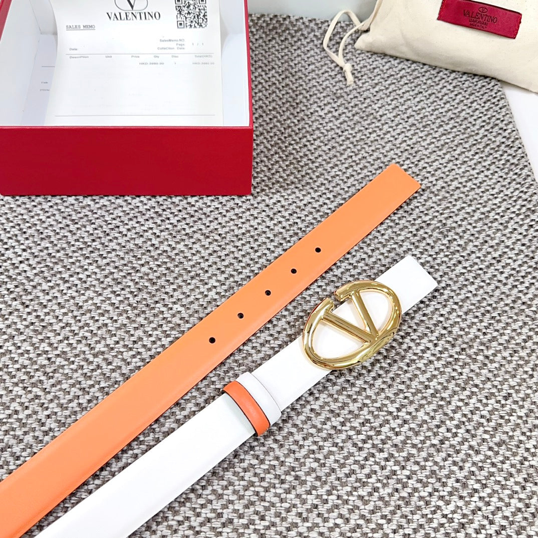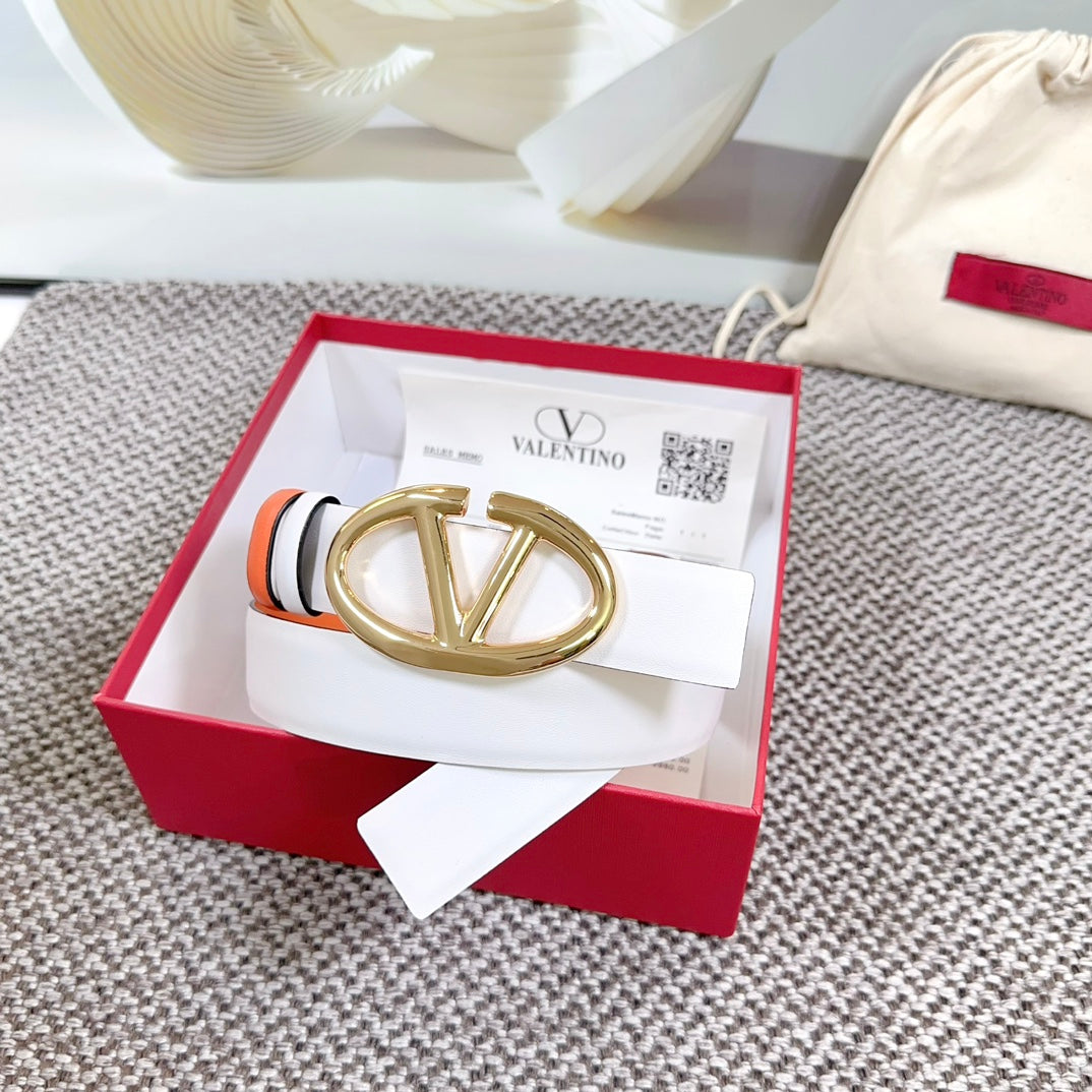 The Bold Edition Reversible Belt 30mm White Brown Calfskin Gold Buckle