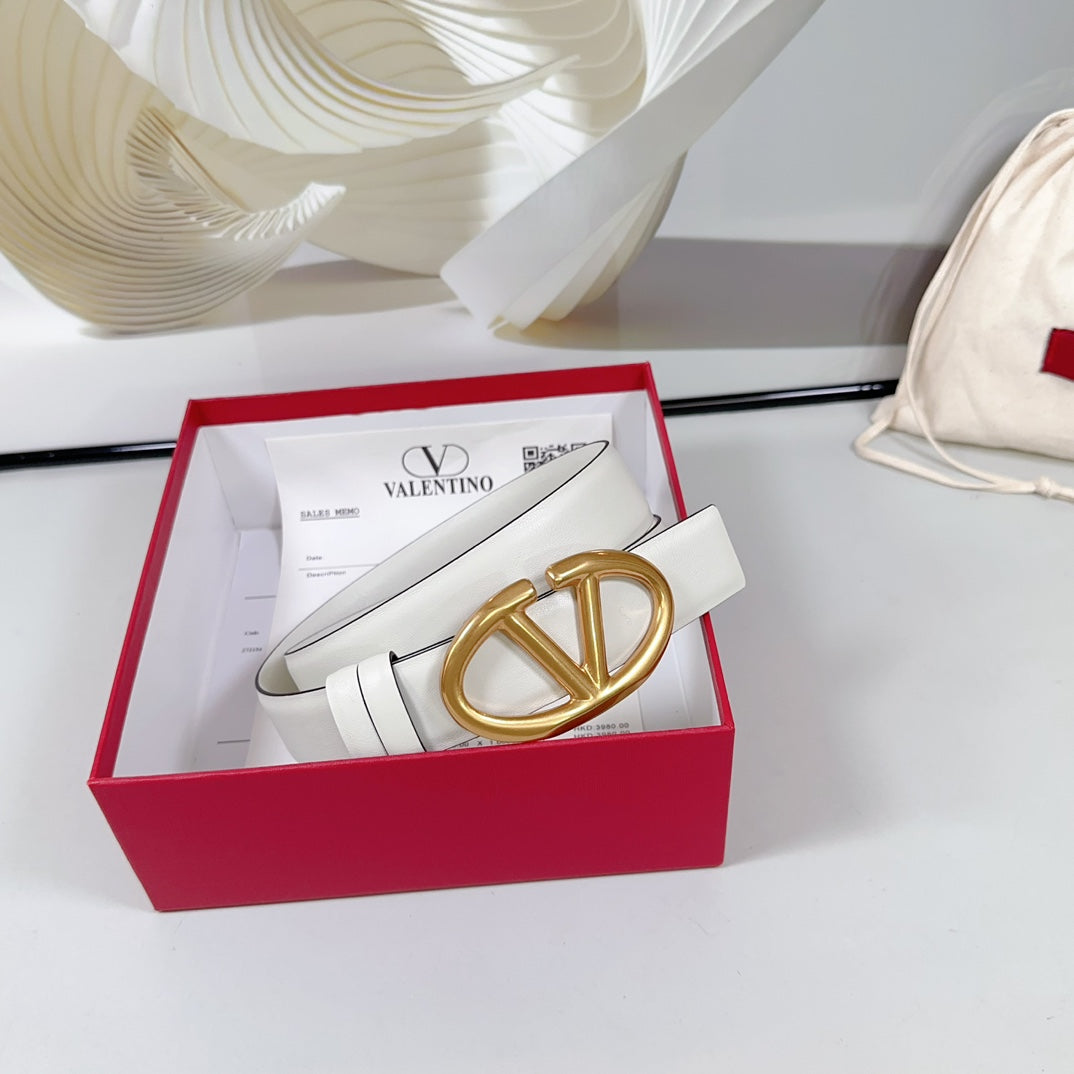 The Bold Edition Revesible Belt 30mm White Calfskin Gold Buckle